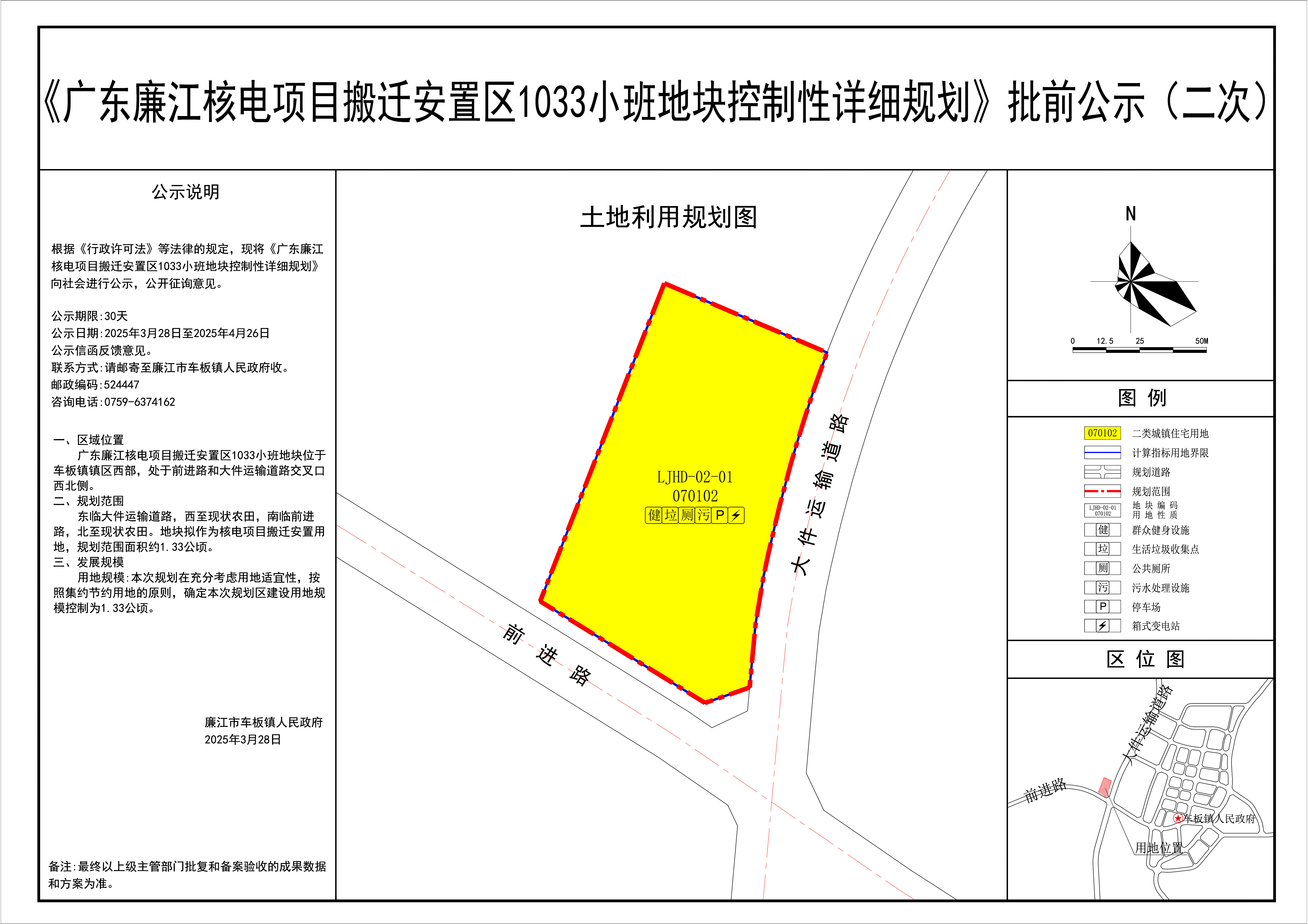 《广东廉江核电项目搬迁安置区1033小班地块控制性详细规划》批前公示(二次)