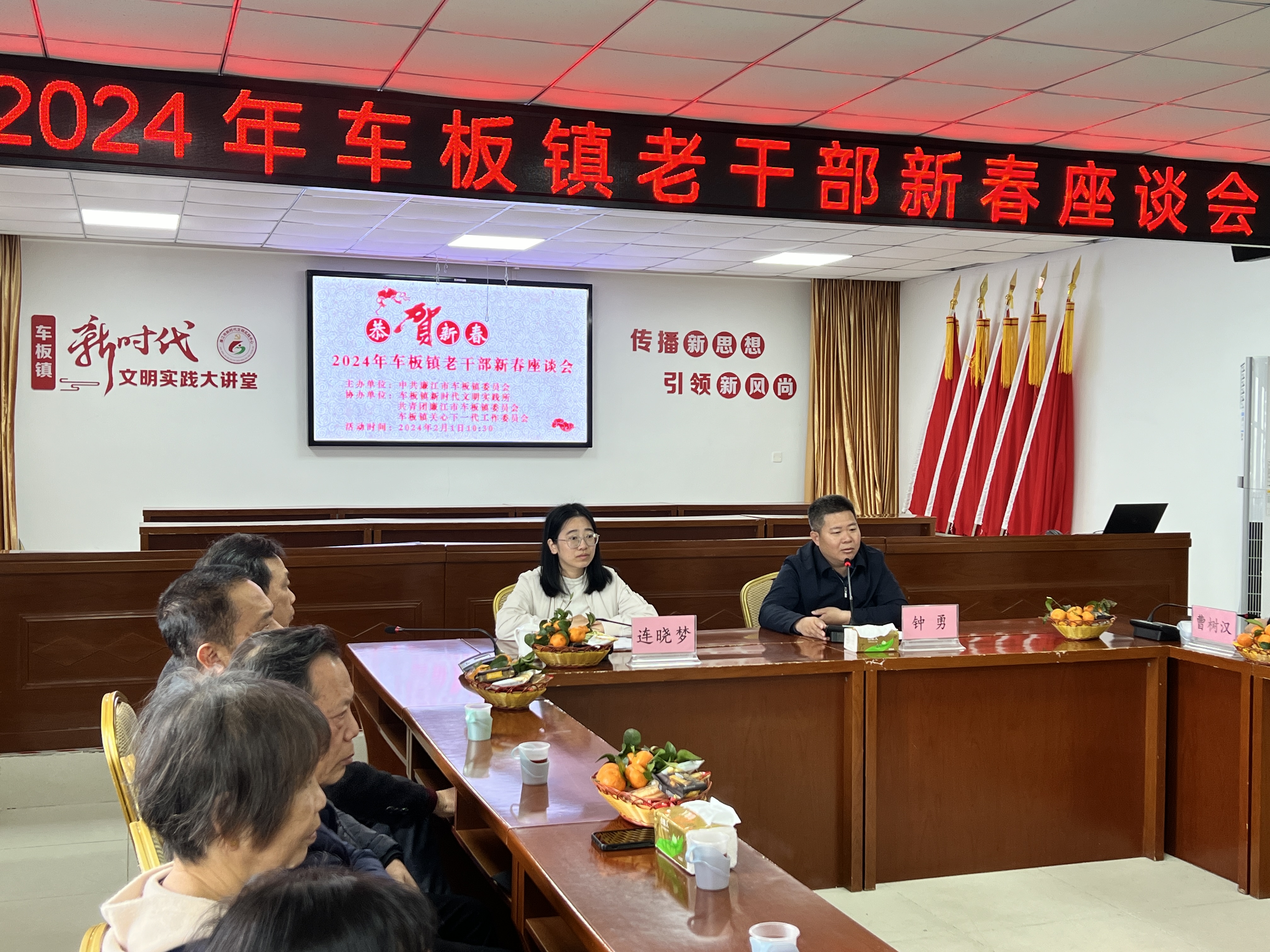在2024年农历新年即将到来之际,为丰富车板镇老干部的文化生活,增加春节节日气氛,助推乡村振兴乡风文明,近日,车板镇举办老干部新春座谈会。镇党委书记钟勇与退休老干部齐聚一堂,共迎新年、共谋发展、共话未来。