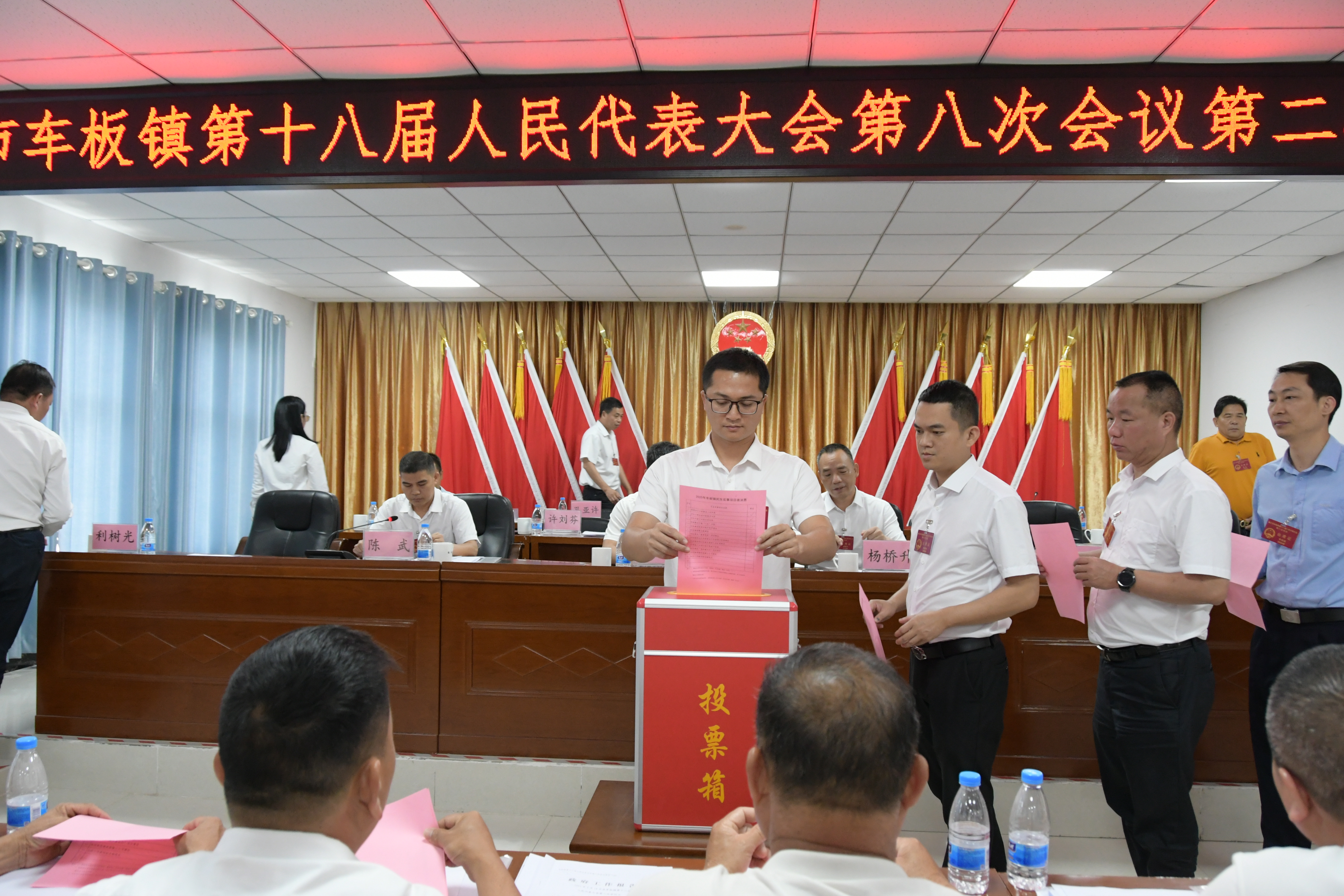 会议表决通过了各项决议草案并票决了车板镇2025年十件重点民生实事项目。