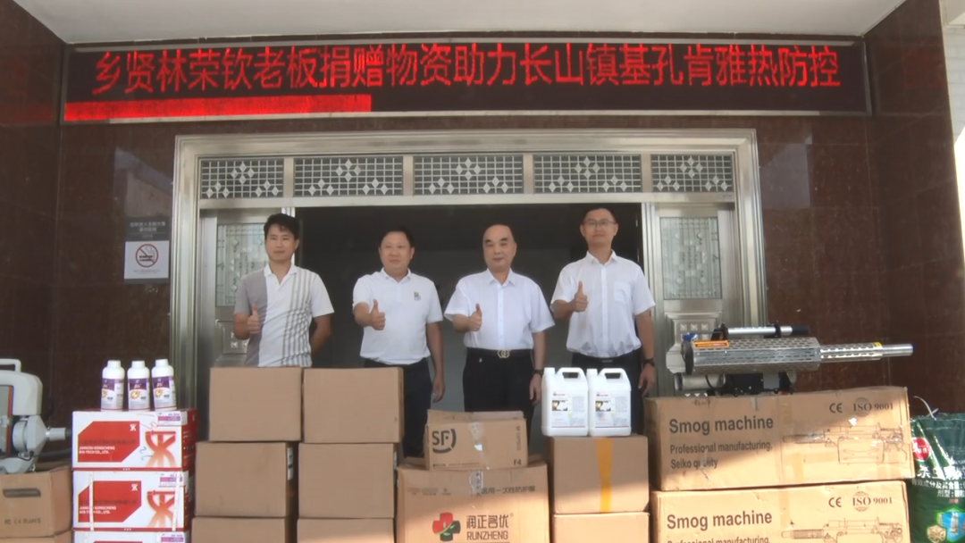 在物资捐赠仪式,长山镇委副书记、镇长胡海华代表镇党委、政府接受捐赠,高度赞扬了热心乡贤林荣钦的善举;并表示基孔肯雅热主要通过蚊子叮咬传播,环境整治和灭蚊消杀是防控关键,这批消杀物资大大充实了长山镇防疫物资储备量,镇政府会尽快将这批物资分至各村委对重点区域进行消杀,保障群众健康安全。