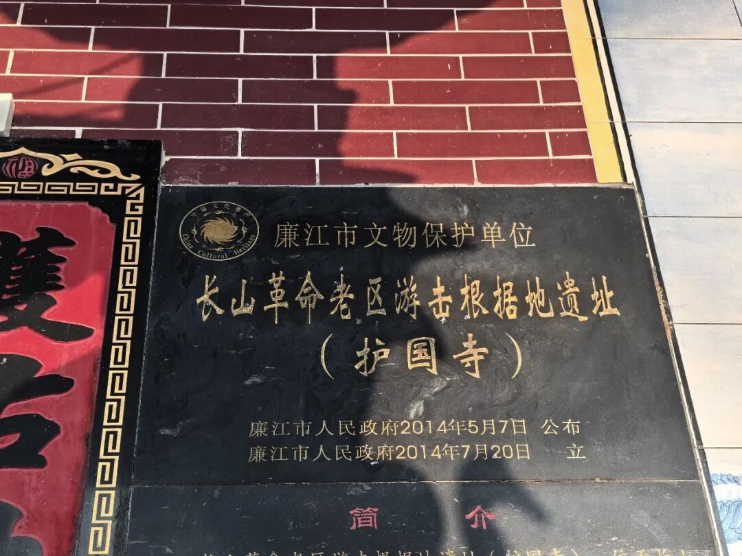 该寺建于明末清初,土地革命时期,廉江县委主要领导人梁安成、梁光华、黄平民、黄明德等依托古寺隐蔽的地理优势,秘密开展地下工作,厢房墙壁上至今仍隐约可见当年的革命标语。