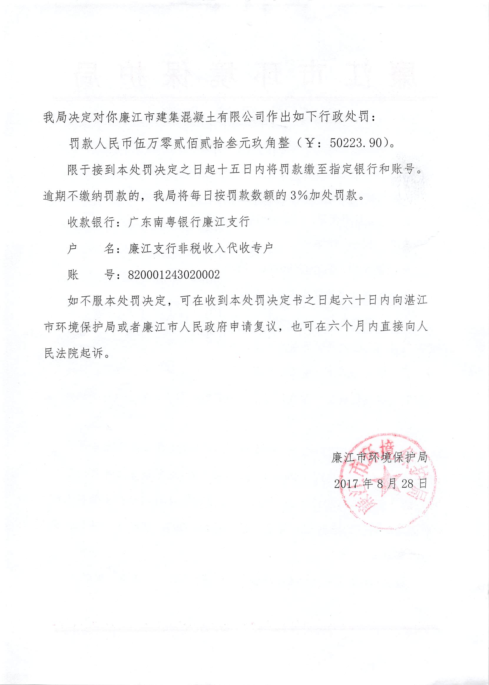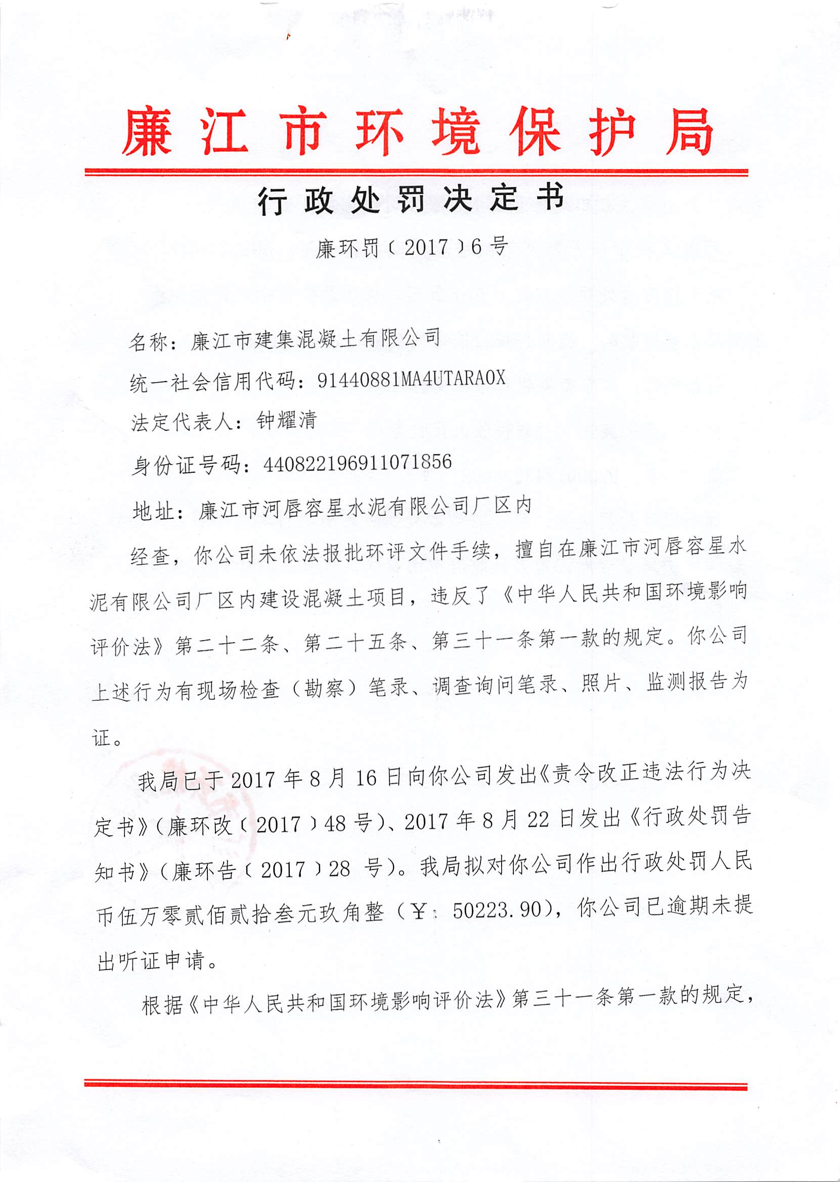 行政处罚决定书(廉江市建集混凝土有限公司)