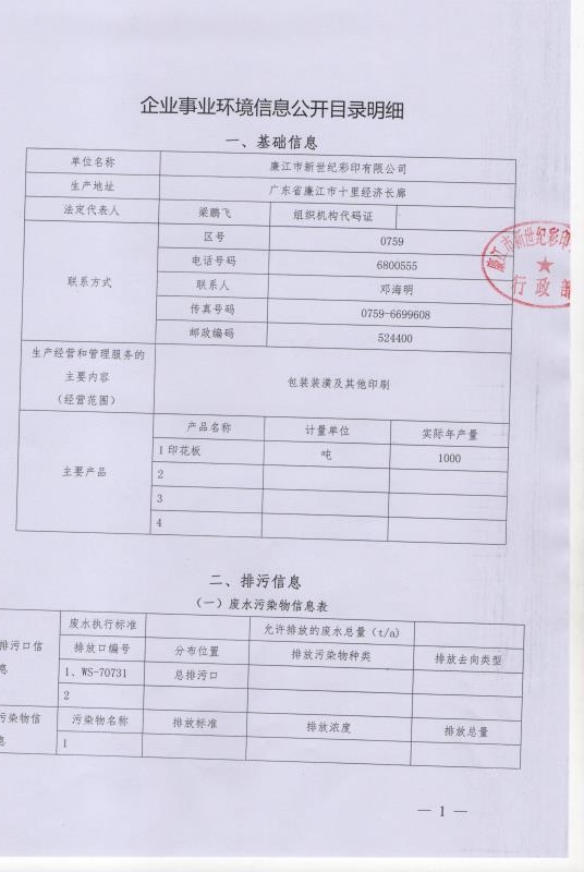 重点企业环境信息公开(廉江市新世纪彩印有限公司)