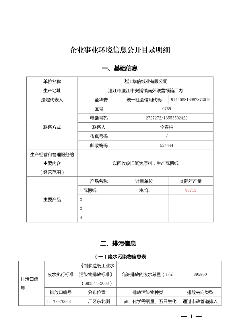 重点企业环境信息公开(湛江华信纸业有限公司)