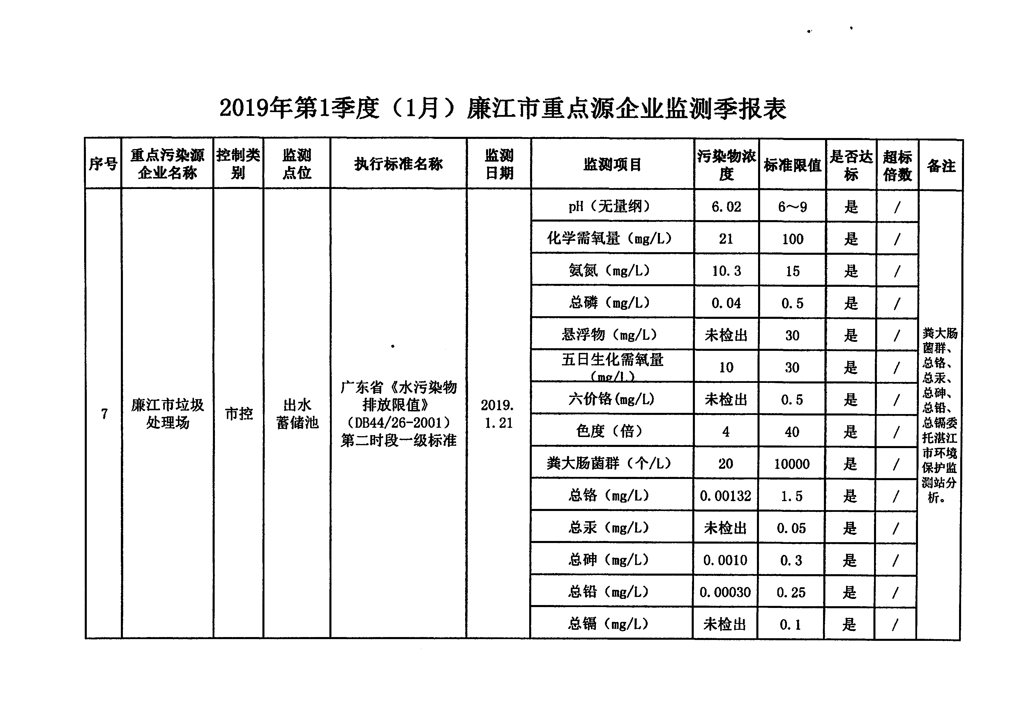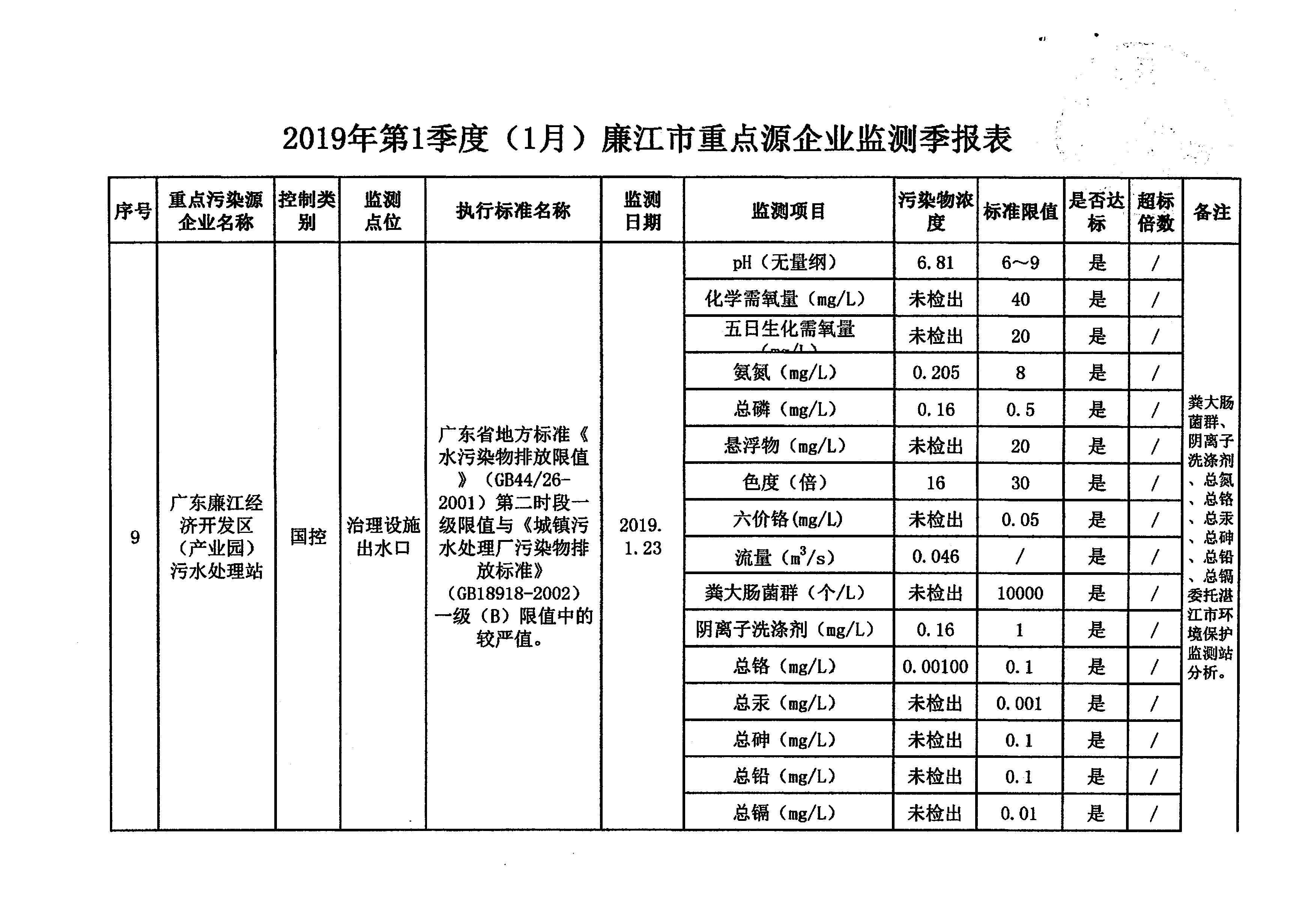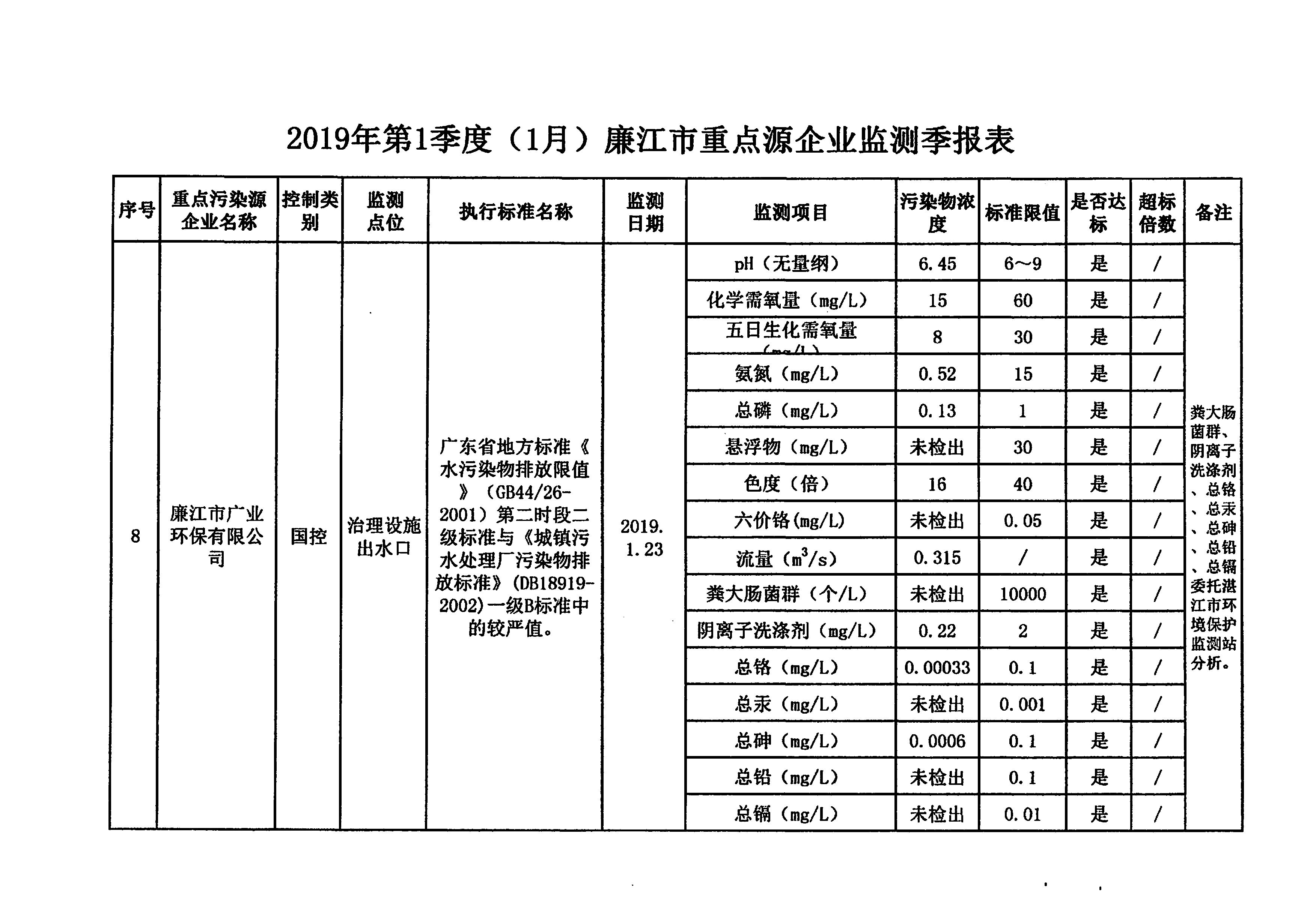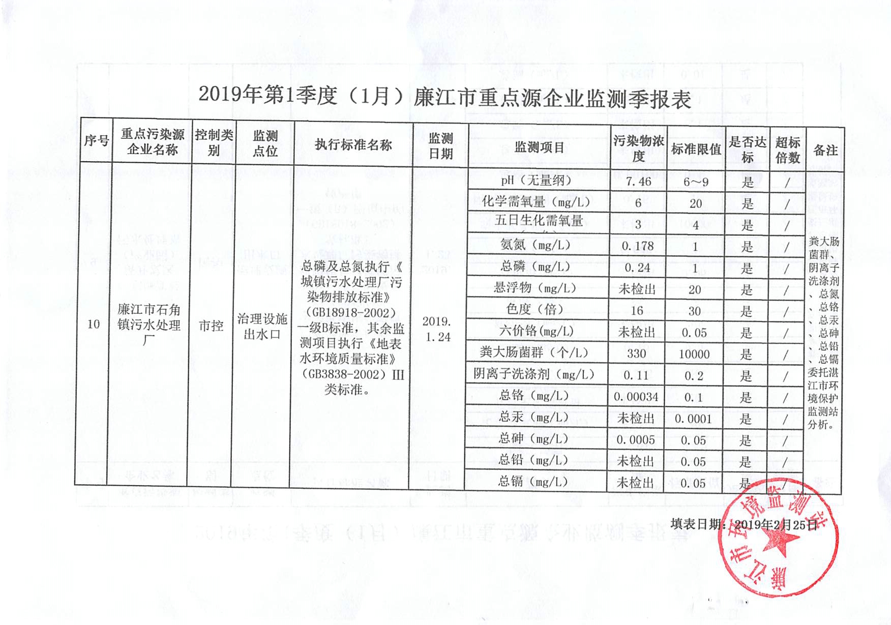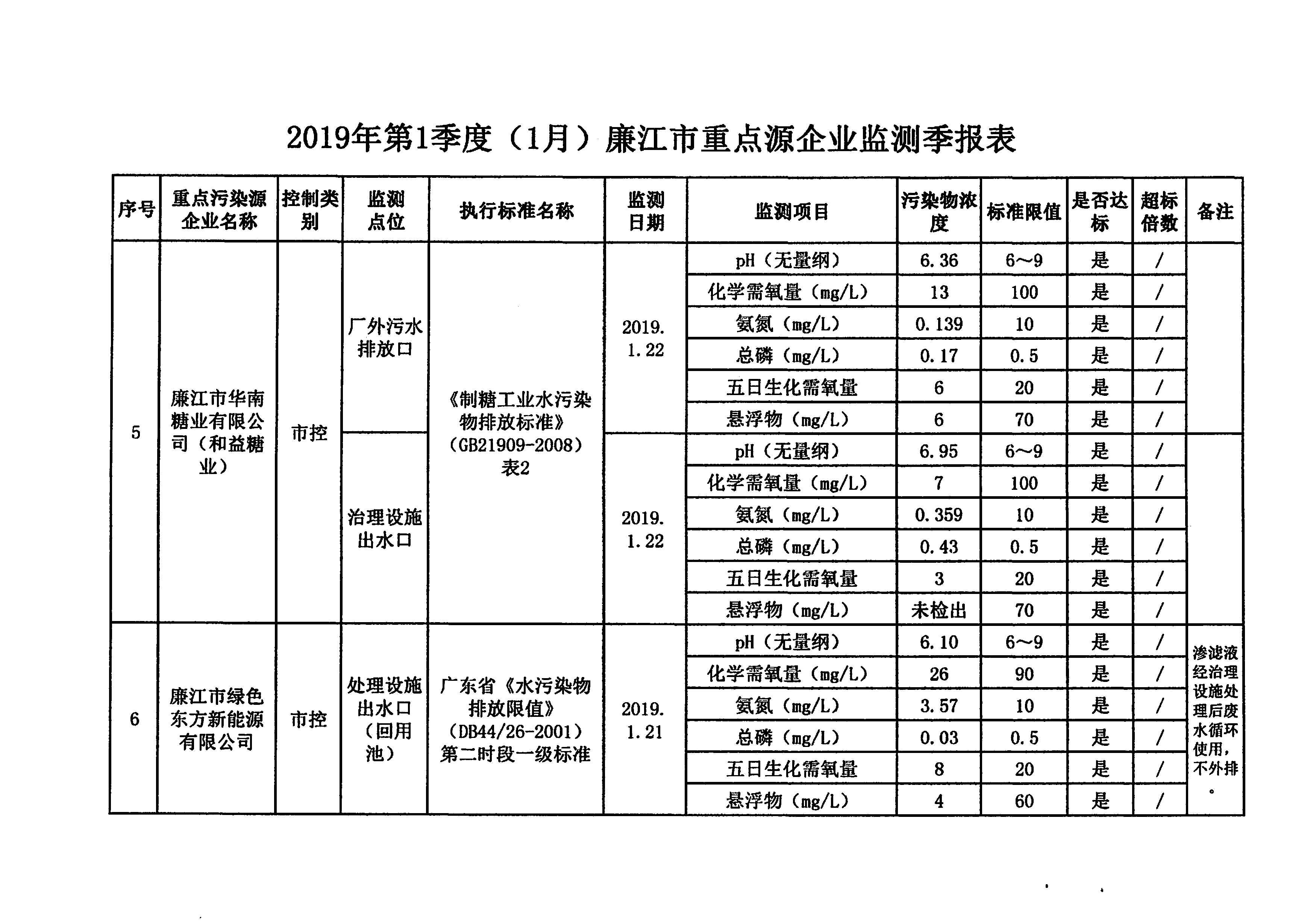 廉江市2019年第1季度(1月)重点源企业监测季报表