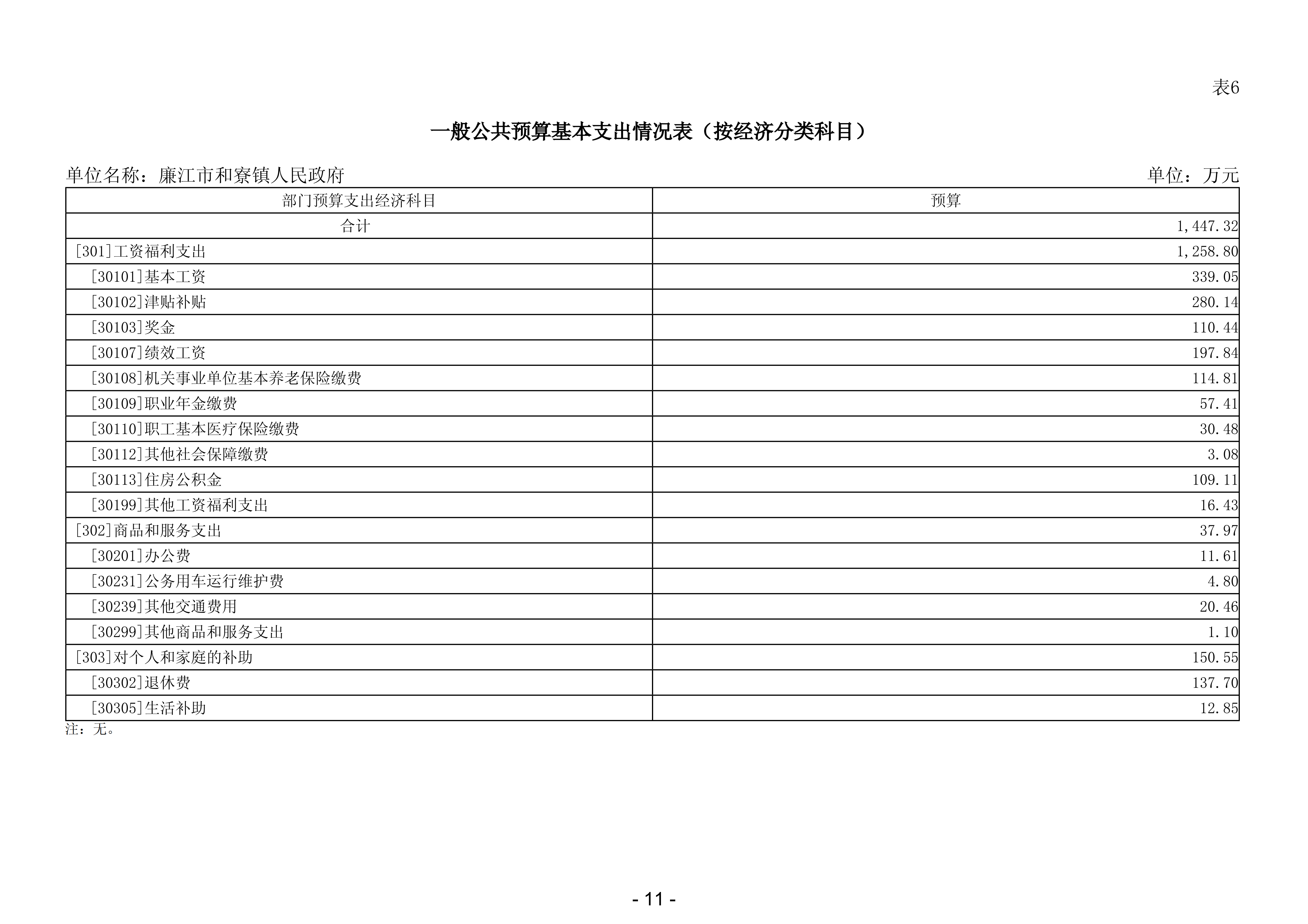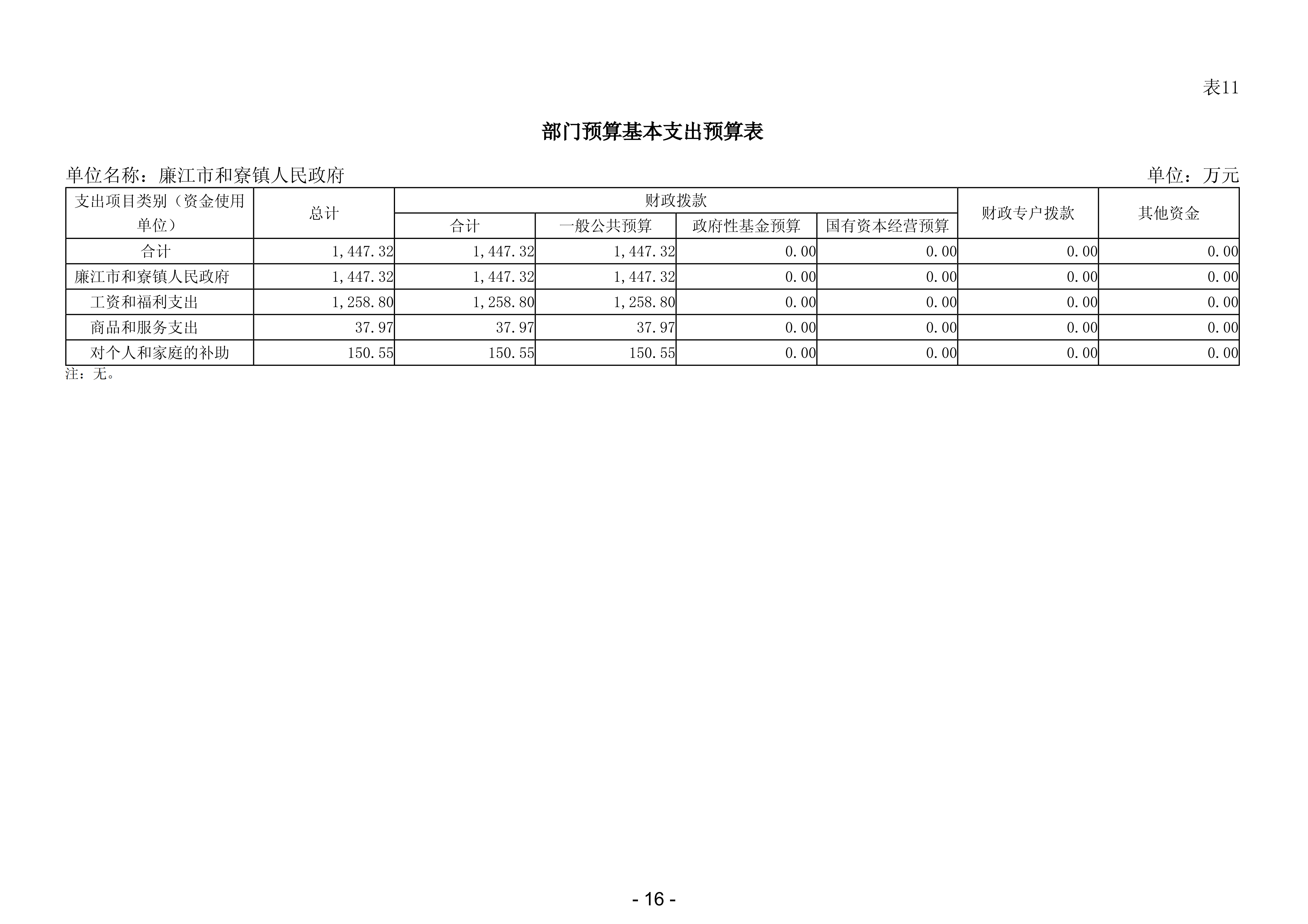 2026年廉江市和寮财政所部门预算