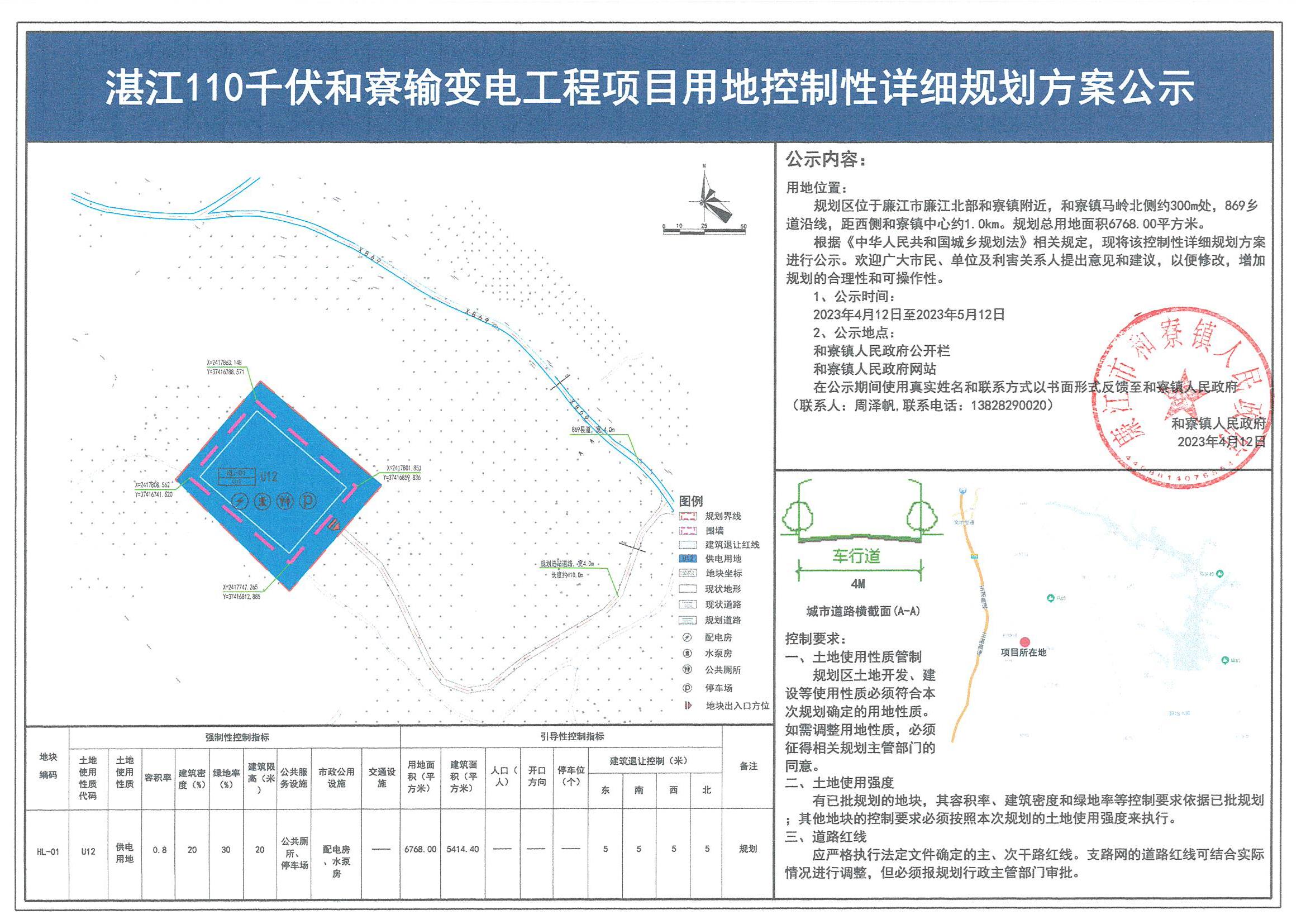 湛江110千伏和寮输变电工程项目用地控制性详细规划方案公示