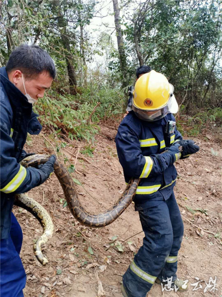 历时8个小时,终于把3条蟒蛇抓捕,因蟒蛇属国家一级保护动物,野生动物救助中心将根据有关要求移送至远离居民区的地方放生。