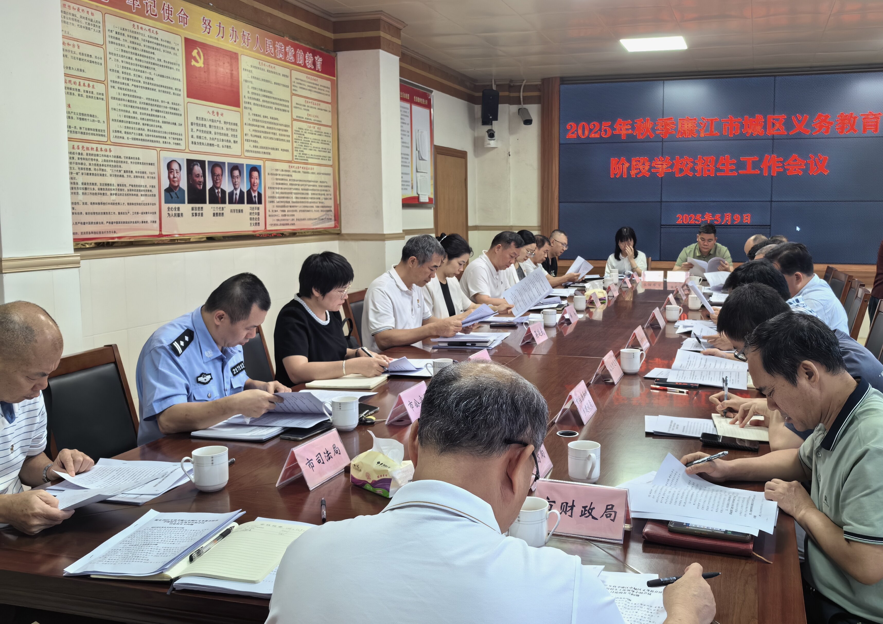 2025年5月9日我市召开2025年秋季城区义务教育阶段学校招生工作会议,研究部署2025年秋季廉江市城区义务教育阶段学校招生工作。韩阳副市长出席会议,廉江市城区义务教育阶段学校招生工作领导小组成员等参加会议。