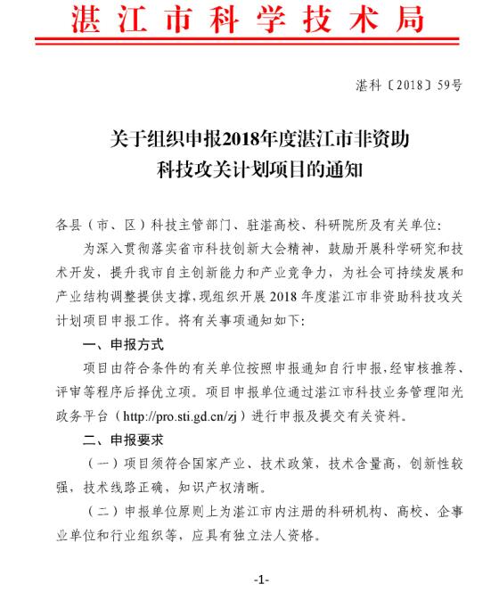 关于组织申报2018年度湛江市非资助科技攻关计划项目的通知
