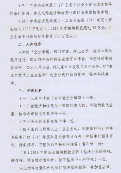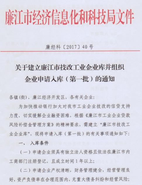 关于建立廉江市技改工业企业库并组织企业申请入库(第一批)的通知