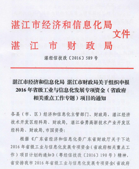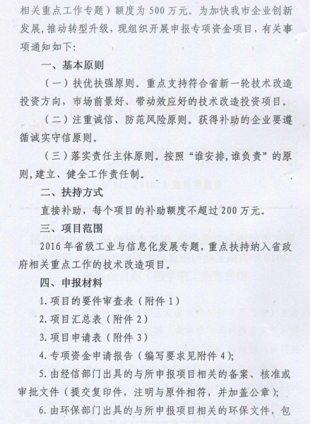 关于组织申报2016年省级工业与信息化发展专项资金(省政府相关重点工作专题)项目的通知