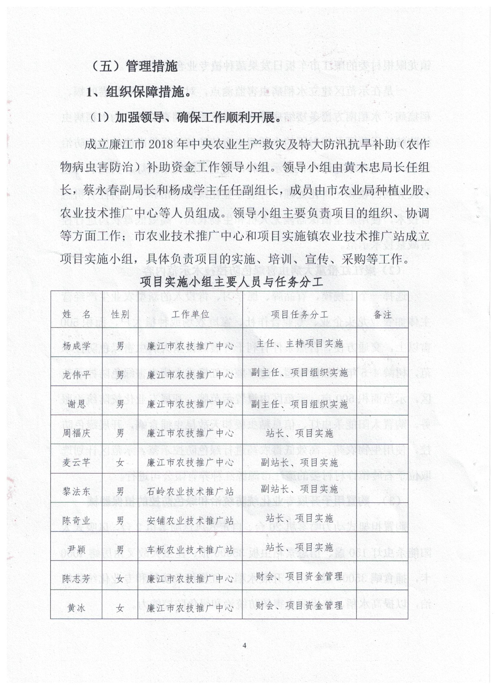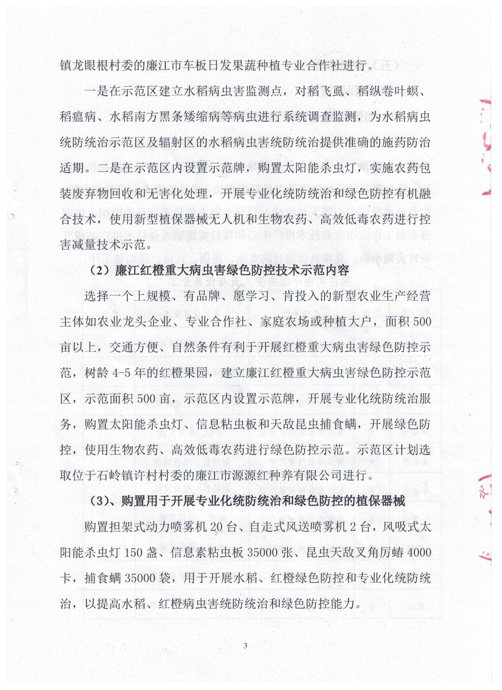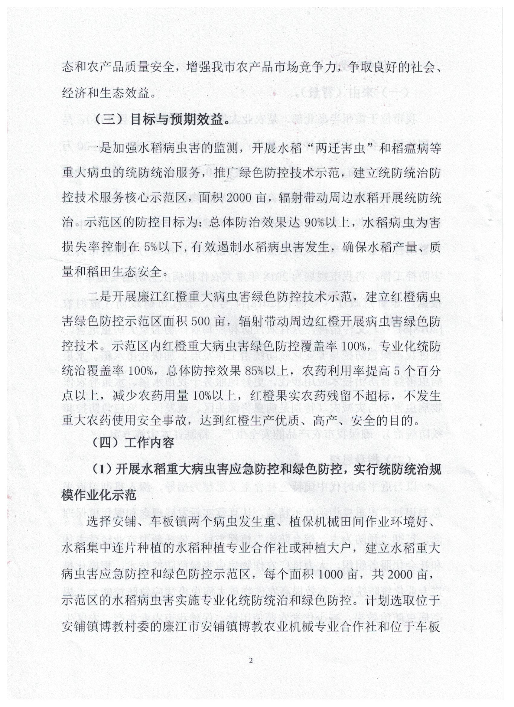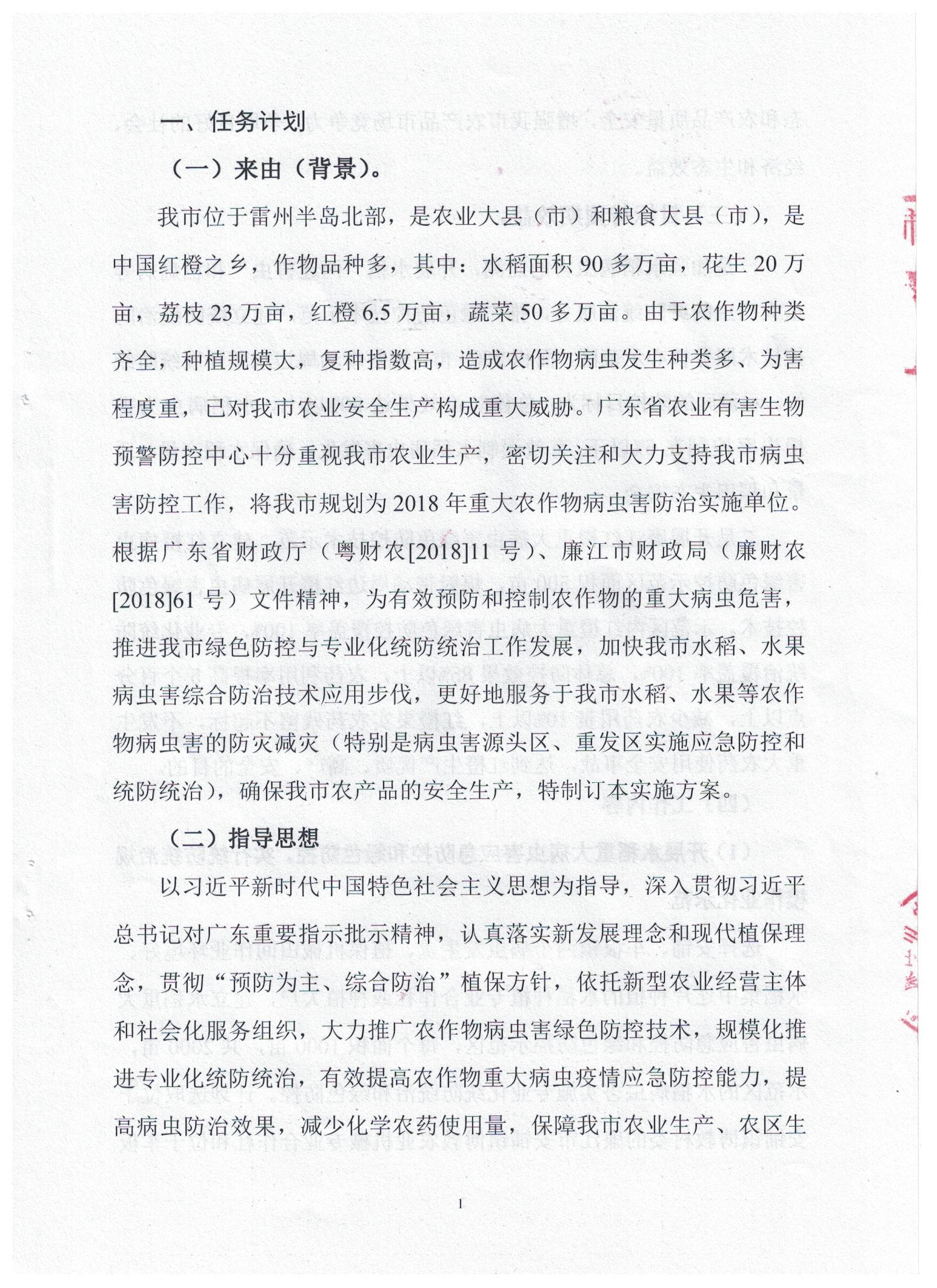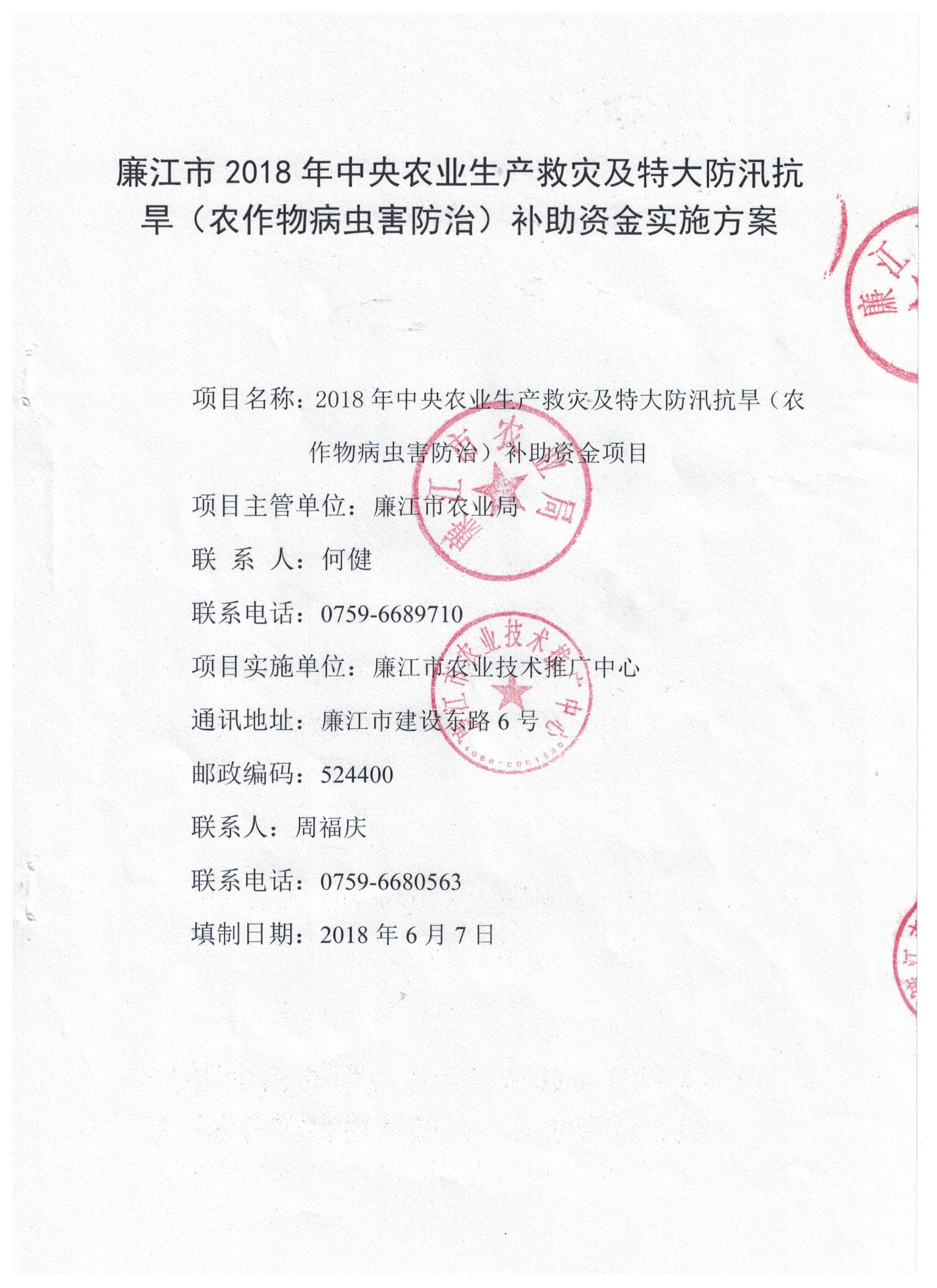 廉江市2018年中央农业生产救灾及特大防汛抗旱(农作物病虫害防治)补助资金实施方案的公示