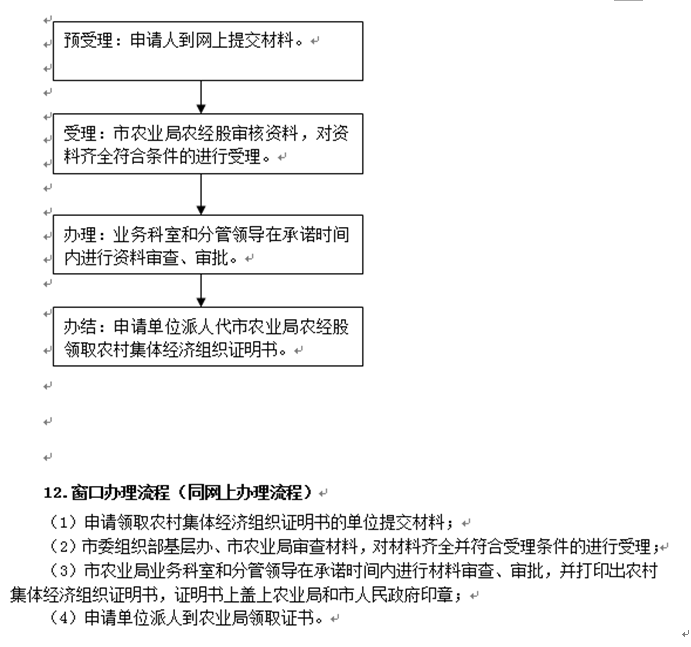 (3)市农业局业务科室和分管领导在承诺时间内进行材料审查、审批,并打印出农村集体经济组织证明书,证明书上盖上农业局和市人民政府印章;