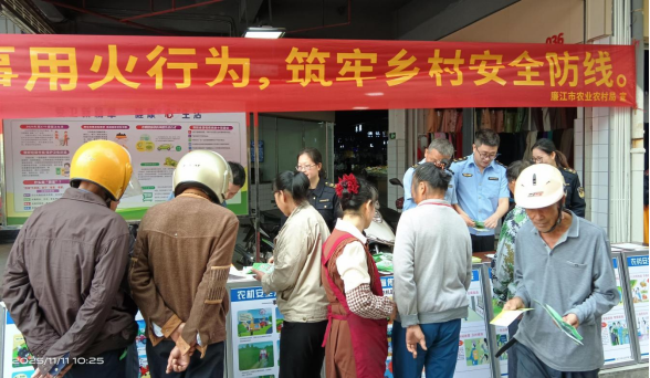 为进一步推进消防安全进农村,增强全民消防安全素质,11月11日上午,湛江市农业农村局联合廉江市农业农村局在廉江市石岭镇同心市场开展2025年农业领域消防宣传主题活动。本次活动紧紧围绕“全民消防、生命至上——安全用火用电”活动主题,重点围绕农业机械操作、农药化肥安全管理、畜禽养殖场所、红火蚁防治等重点环节,以及农事用火规范管理、秸秆科学处置、林缘地带农业生产防火等内容,开展面对面针对性宣传。工作人员向群众派发宣传手册、宣传单,仔细向群众讲解农业生产活动中的消防安全知识以及相关的法律法规,宣传安全用火用电用气、规范农事用火、推进秸秆综合利用等知识。本次活动出动宣传人员12人次,悬挂横幅2条,派发宣传手册230余份、宣传单370张,宣传受众260余人次,有效提升群众消防安全意识,营造“共建共享共治”良好氛围。