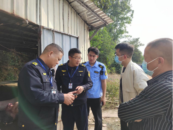 12月4日13时20分,联合执法队伍对涉事窝点开展突击检查。经查,该窝点仅搭建简易屠宰设施,屠宰环境脏乱差,不具备基本生猪屠宰卫生条件,且涉案当事人正在实施非法屠宰活动。执法人员现场控制4名当事人,查获涉案猪约540市斤,成功捣毁该隐蔽的私屠滥宰窝点。