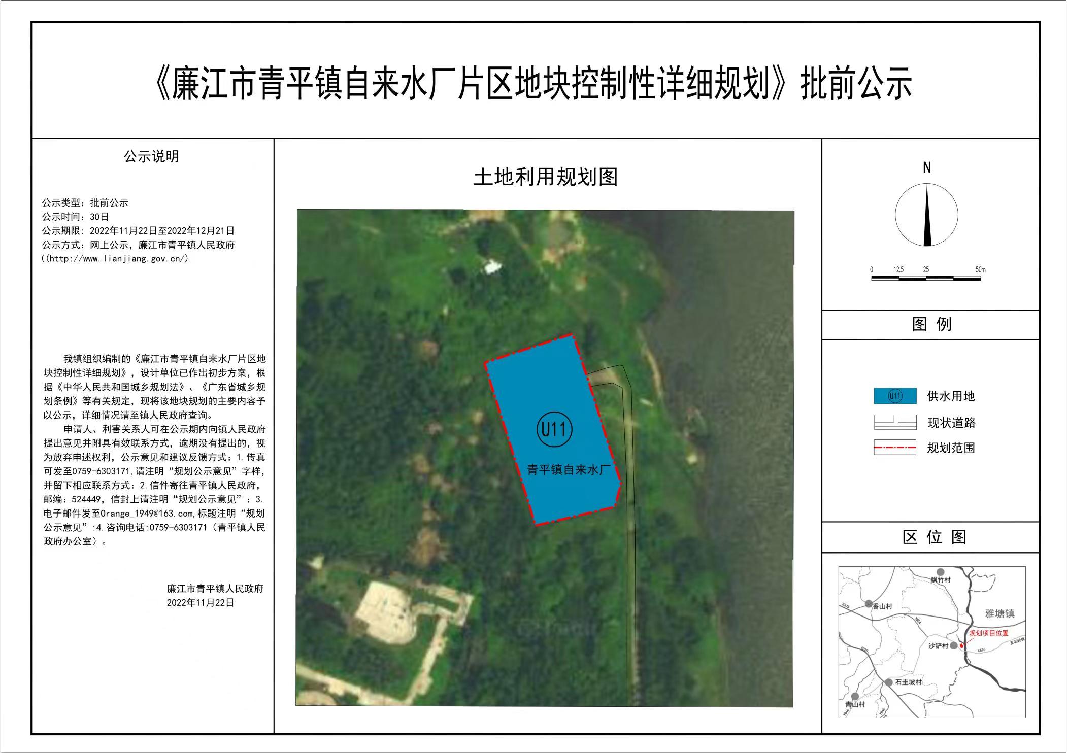 《廉江市青平镇自来水厂片区地块控制性详细规划》批前公示