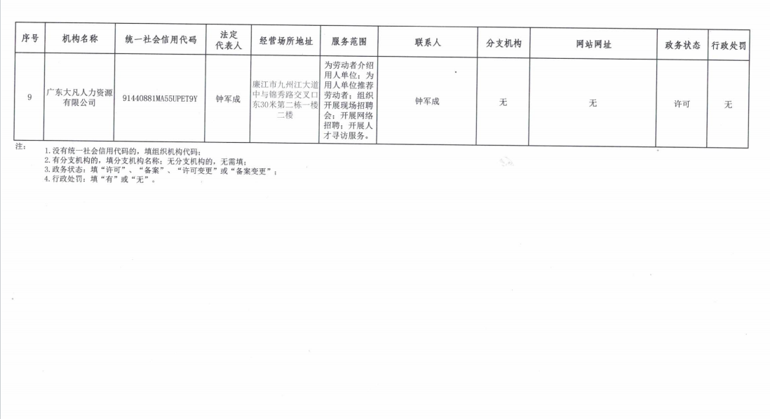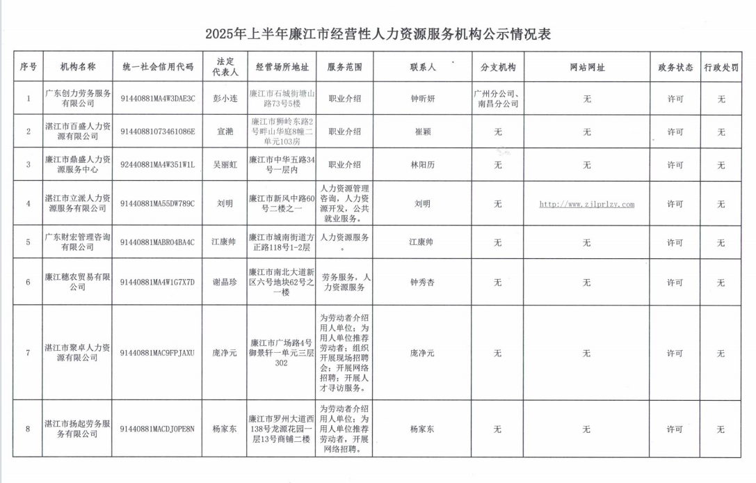 2025年上半年廉江市经营性人力资源服务机构公示情况表