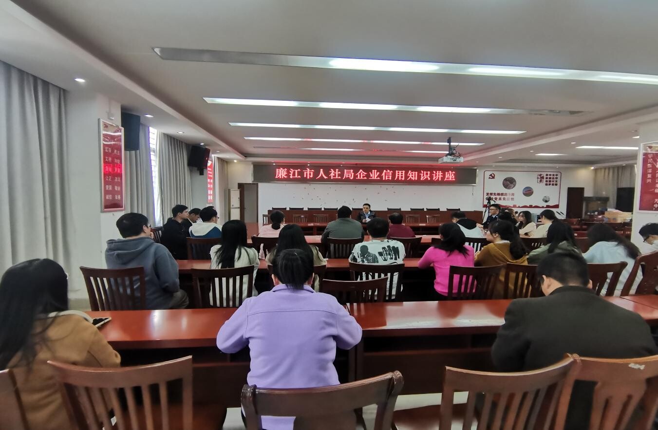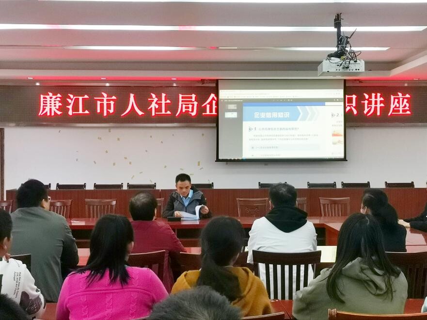 12月28日,廉江市人力资源和社会保障局组织开展企业信用知识讲座,大力宣传企业信用知识,进一步规范社会信用管理,保障自然人、法人和非法人组织等信用主体合法权益,促进社会信用体系建设,营造诚实守信的社会环境。