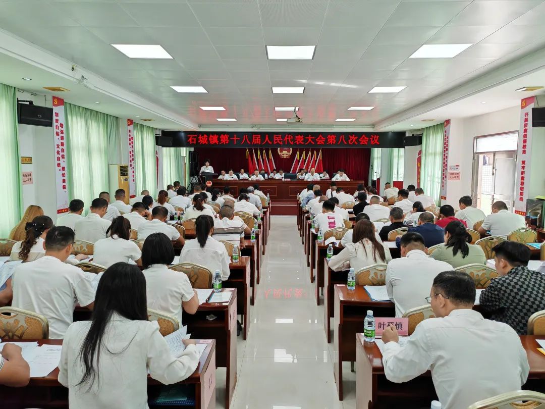 石城镇镇委副书记、镇长黄水秀作《石城镇人民政府工作报告》;石城镇人大主席罗立锋主持会议。