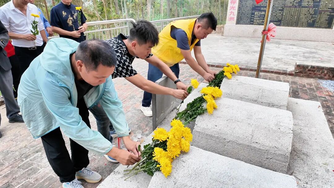在马山革命烈士墓前,大家肃立敬礼、敬献鲜花,向革命先烈表达深切的哀思。