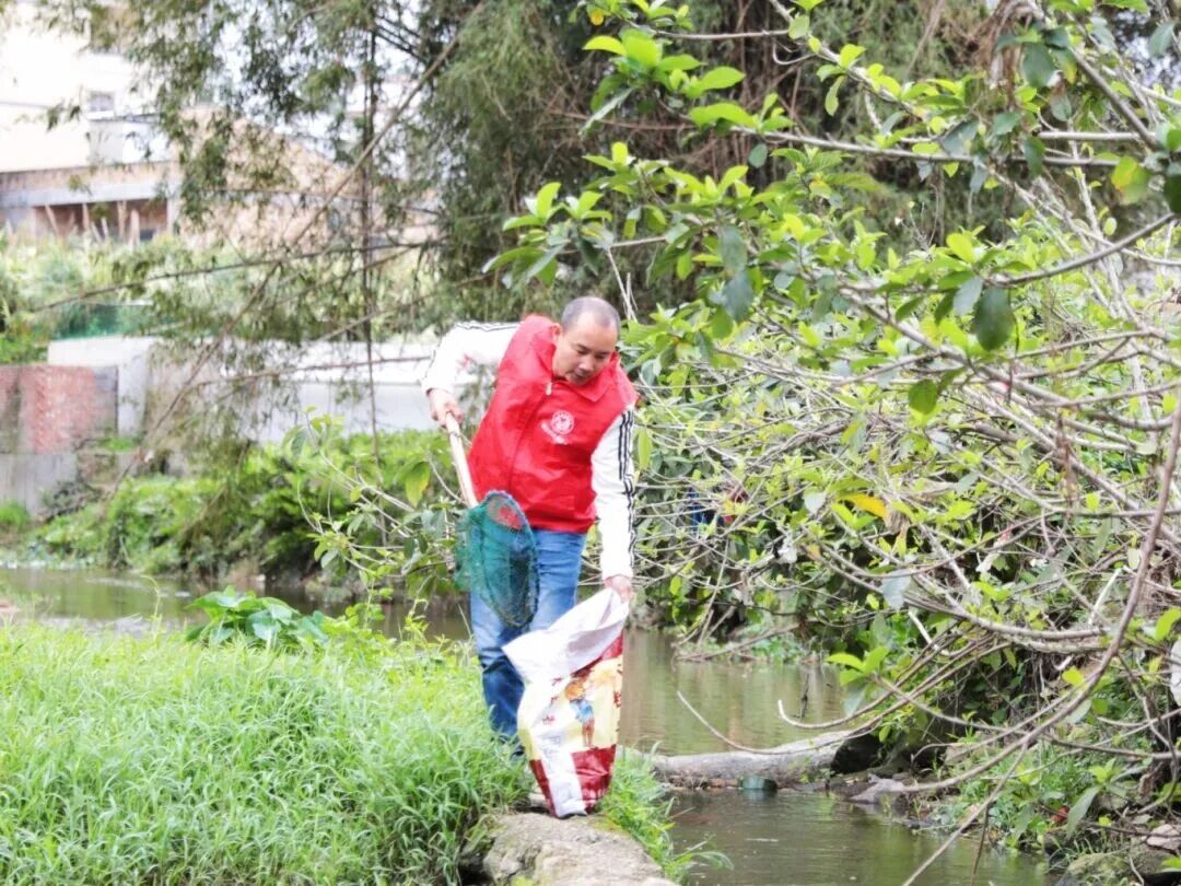 早上在鹤地水库岸边,总能看到一抹红色的身影。左手提着麻袋,右手握着绿网,身着志愿服的石角镇民间河长郑锦平,正沿着河道细致巡查。自2022年主动报名成为廉江民间河长以来,巡河便成了他家庭生活之外的核心日常。守护家乡的“母亲河”,是这位土生土长石角人的初心,也是廉江各级河长的做法。