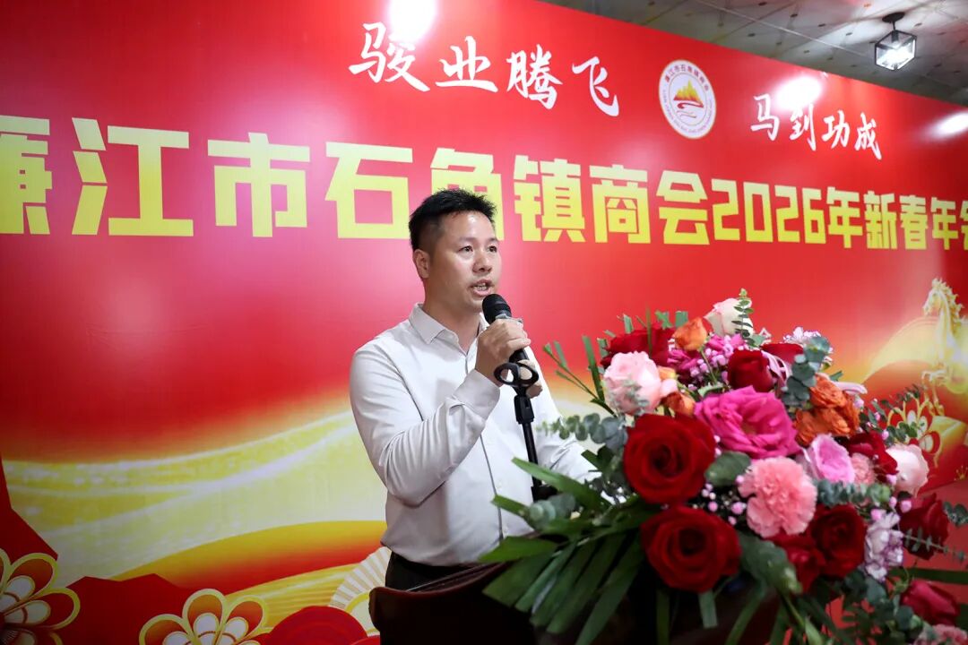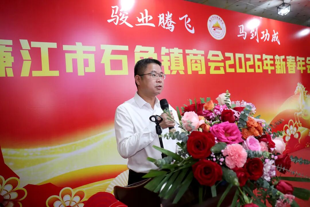 石角镇党委副书记、镇长朱其茂代表石角镇党委、政府向长期以来关心支持石角镇发展的商会会员、乡贤代表致以诚挚的问候和新春的祝福。