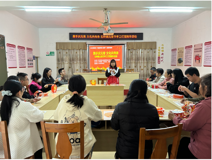 灯启初春时,浓情共元宵。为弘扬中华民族传统文化,丰富群众精神文化生活,营造和谐、祥和喜庆的节日氛围,在元宵佳节来临之际,2月23日上午,石岭镇在新时代文明实践大讲堂开展“携手庆元宵,文化共传承”元宵节手工灯笼制作活动。