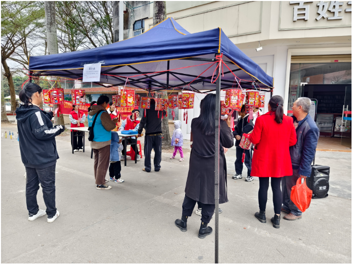 活动现场,志愿者向现场群众发放制作灯笼的材料,并介绍了制作灯笼的步骤及注意事项。在志愿者的示范指导下,大家兴致勃勃地进行折叠、组装,互相帮忙,分享交流制作经验。半小时后,一盏盏色彩绚丽、充满年味的龙年灯笼制作完成。小小的灯笼,传递着一份份节日的美好祝愿,更承载着一份份厚重的传统文化。现场群众脸上都洋溢着幸福的笑容,活动现场变得更加温馨、热闹。