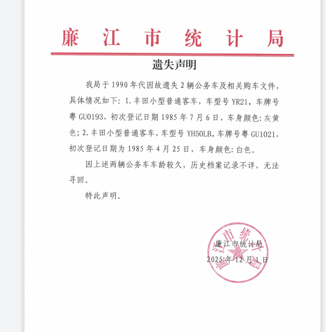 遗失声明