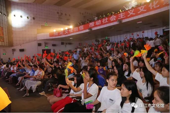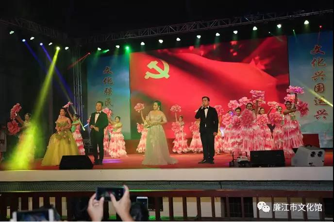 为深入贯彻党的十九大精神,坚定文化自信,繁荣我市群众文化生活。2018年6月4日晚上,由中共廉江市委宣传部、廉江市文化广电新闻出版局主办,廉江市文化馆承办,广东文理职业学院、众利文化传播协办的“不忘初心·砥砺前行”廉江市欢乐广场文艺晚会在廉江市影剧院璀璨上演。来自2018年全国公共文化巡讲暨广东省文化站站长培训班(湛江、茂名片)的省、市领导、专家和文化战线的同行等1300多人观看了演出。