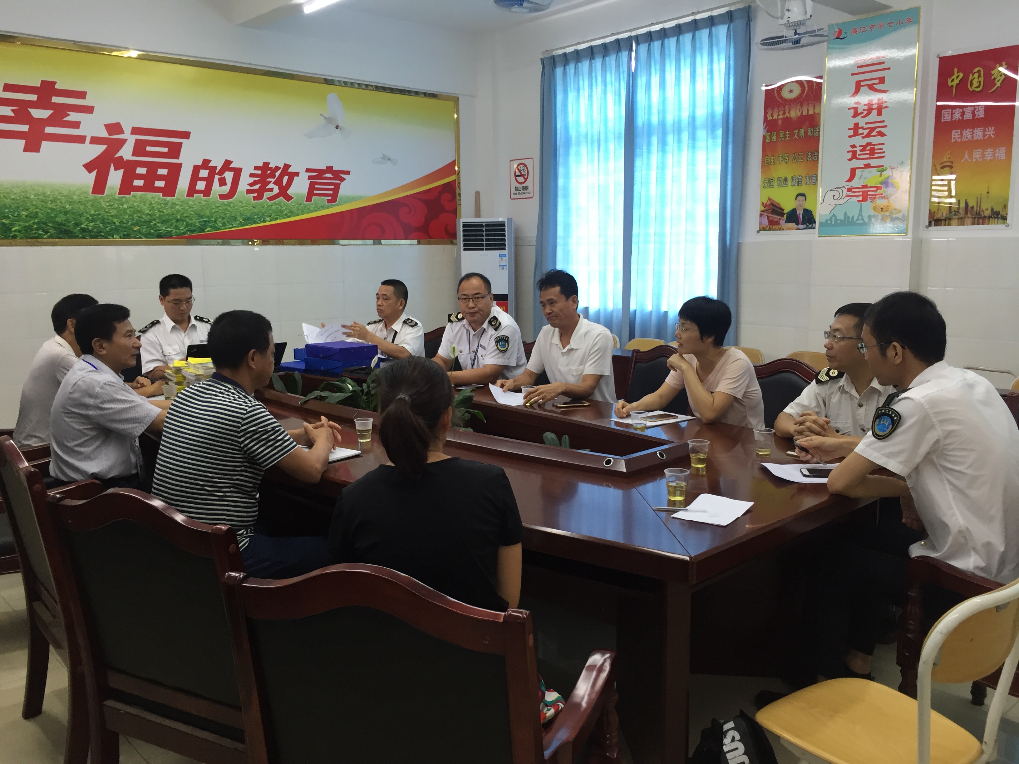 2018年6月12日,湛江市卫生监督所副所长莫颖瀚带领检查组一行到我市检查学校卫生工作。检查组先后对我市育才职业中学和市第七小学进行了具体细致的检查,通过实地查看现场、检查文件资料等形式对我市学校教育环境、突发公共卫生事件、传染病预防控制、常见病与多发病管理、生活饮用水卫生管理、生活环境卫生管理和保健室等方面进行全面检查督导。