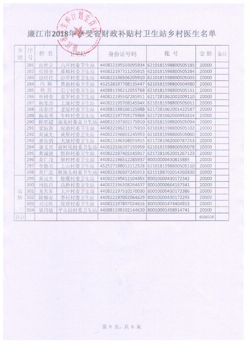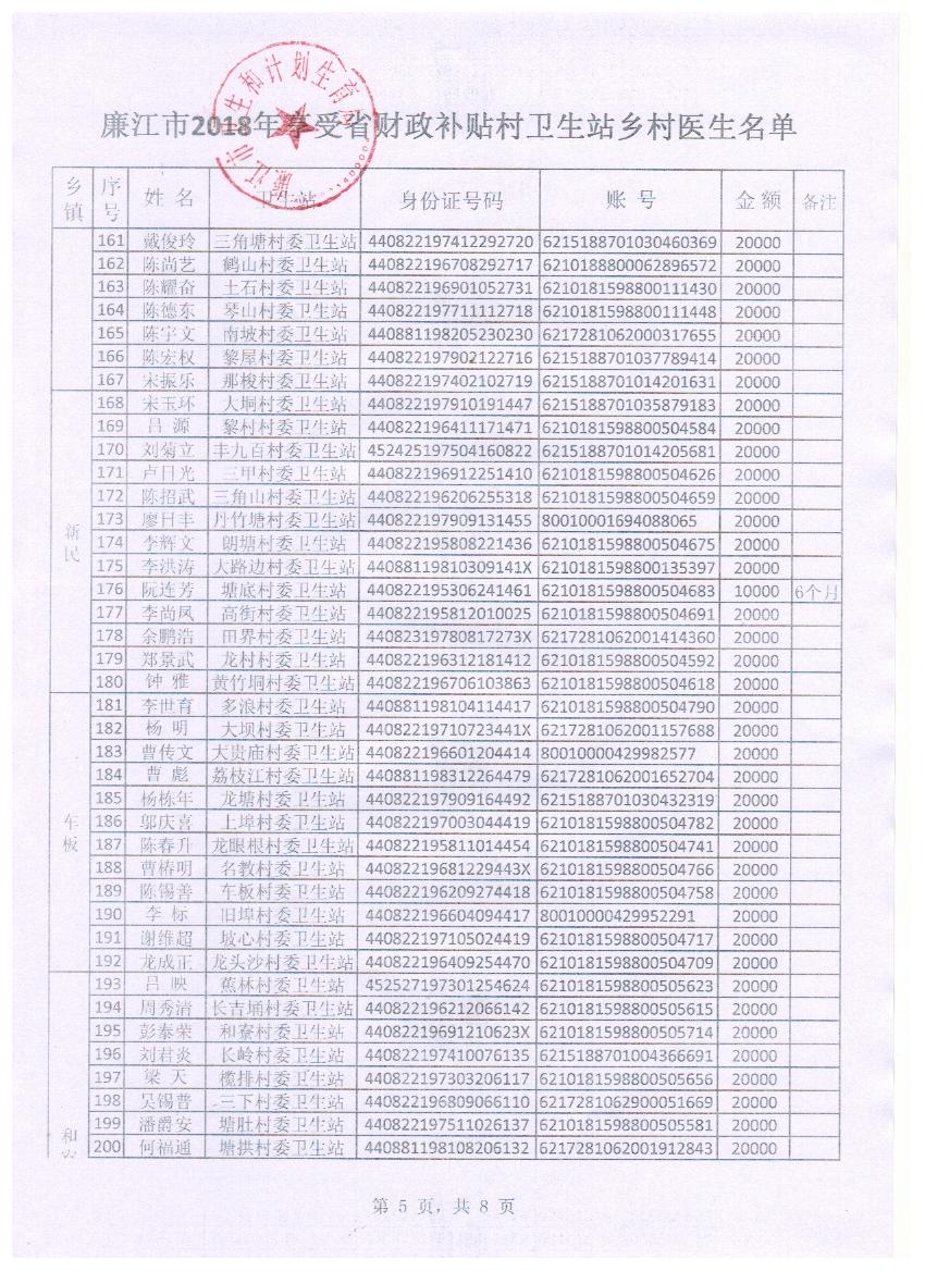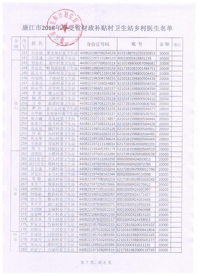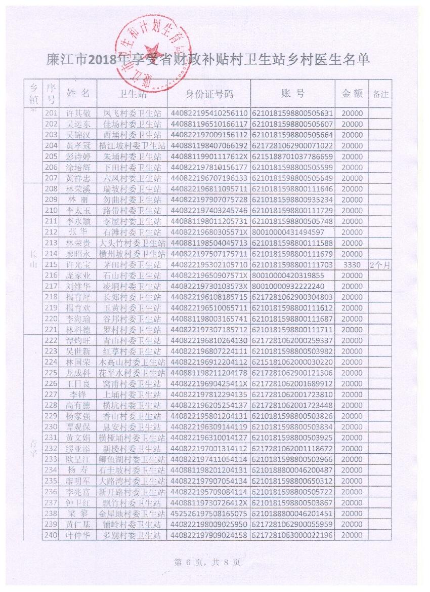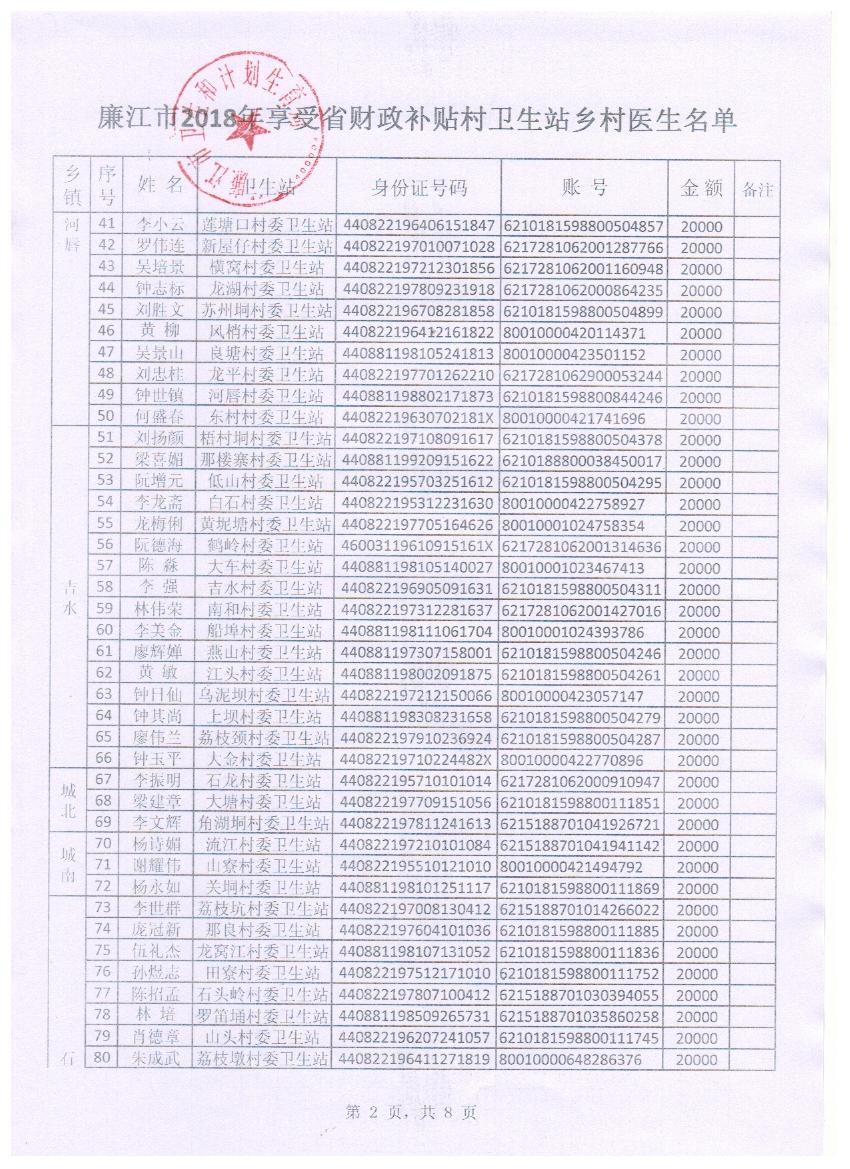 廉江市2018年享受省财政补贴村卫生站乡村医生公示