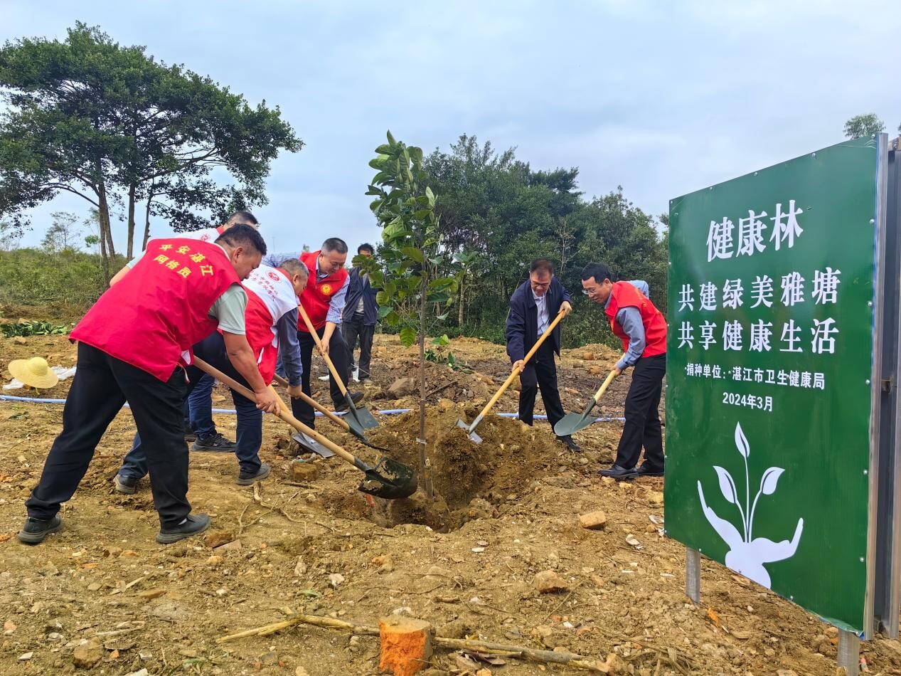 2024年3月21日下午,湛江市卫生健康局党组书记、局长林兵带队赴雅塘镇开展“百千万工程”调研暨“为雅塘充植”植树活动,林兵局长一行先到雅塘镇陀村“健康林”开展绿化植树活动,后分别到大人岭古树公园、南禾九谷农业发展有限公司、雅塘党群服务中心及博雅医院进行调研。我局党组书记、局长吴敏同志陪同。