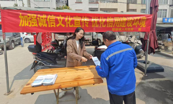 二、开展社区宣传营造诚信氛围。2025年3月31日,镇经济发展办公室在万家恩购物广场设摊宣讲,发放宣传单,提升群众信用意识。
