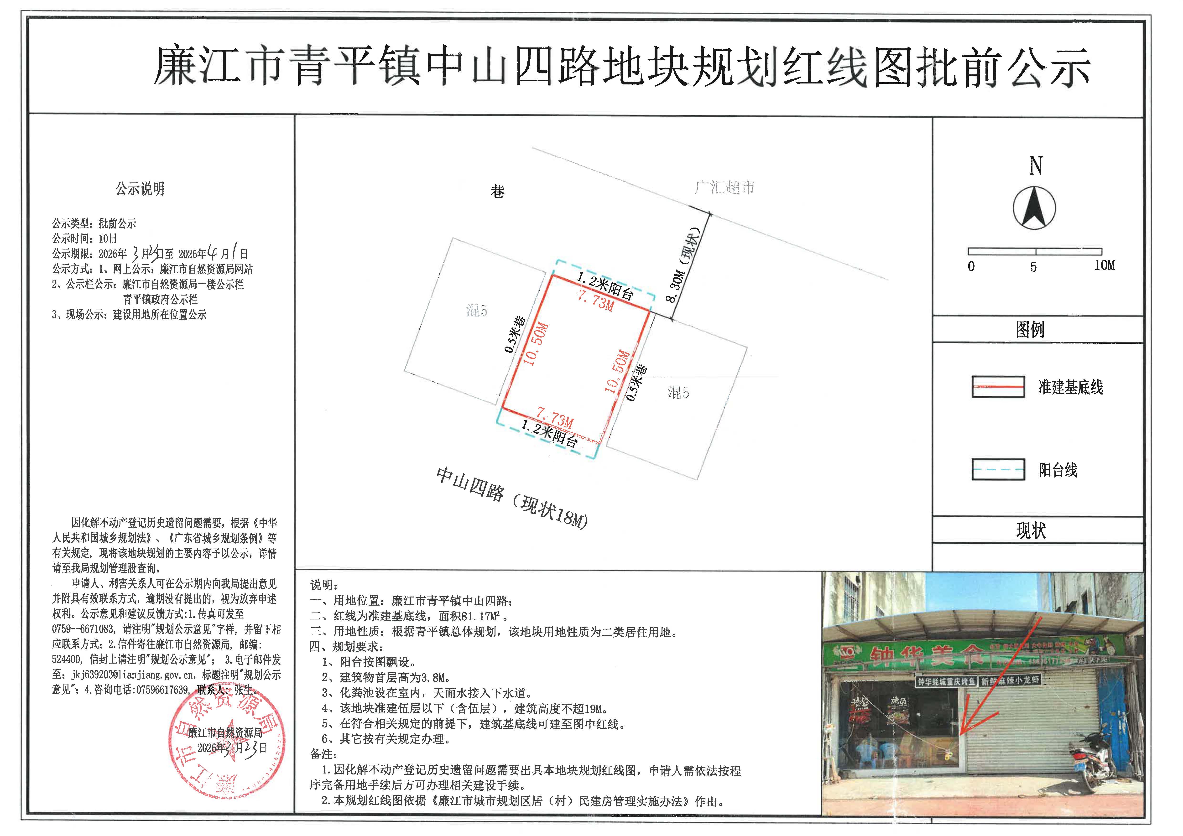 廉江市青平镇中山四路地块规划红线图批前公示