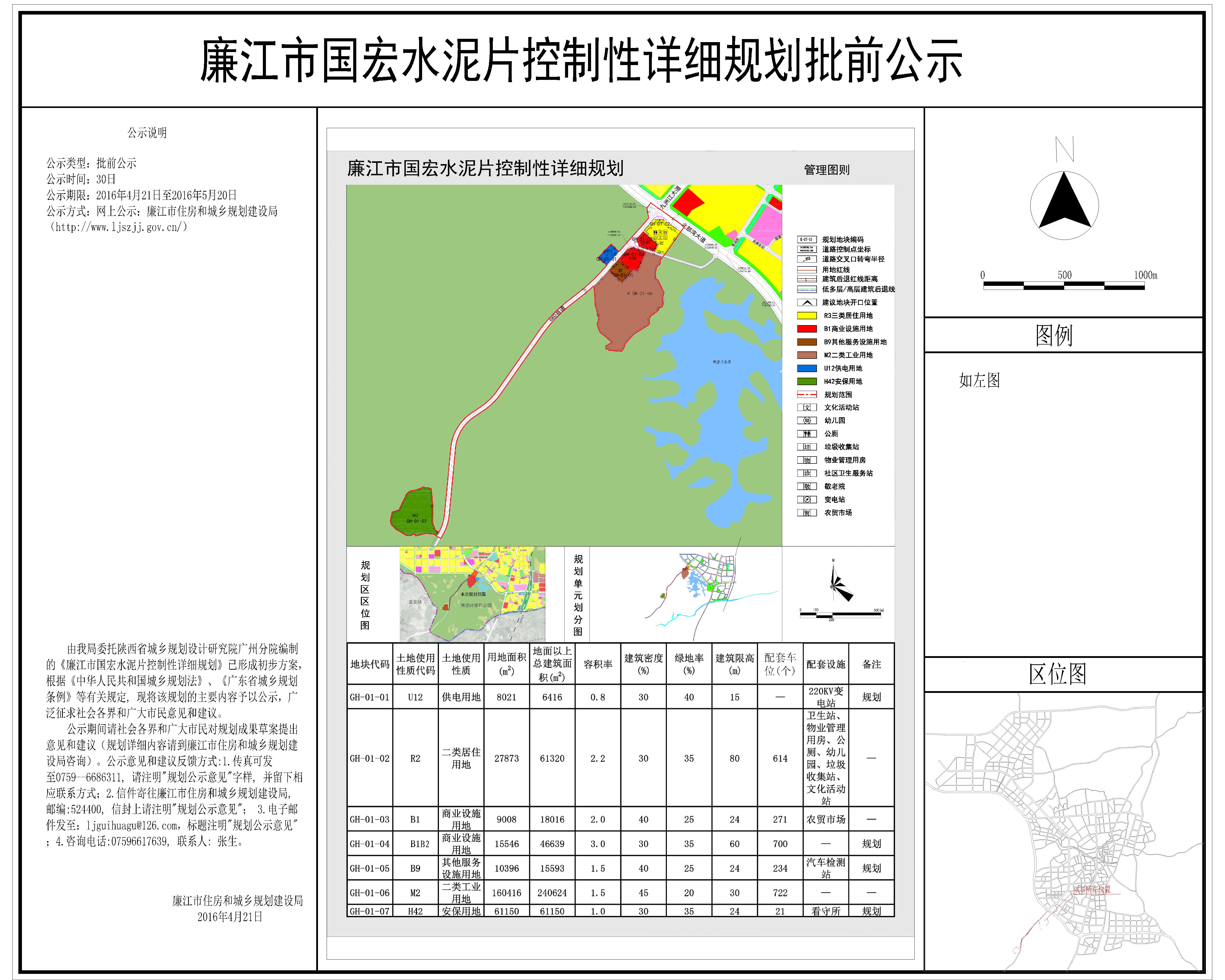 廉江市国宏水泥片控制性详细规划批前公示