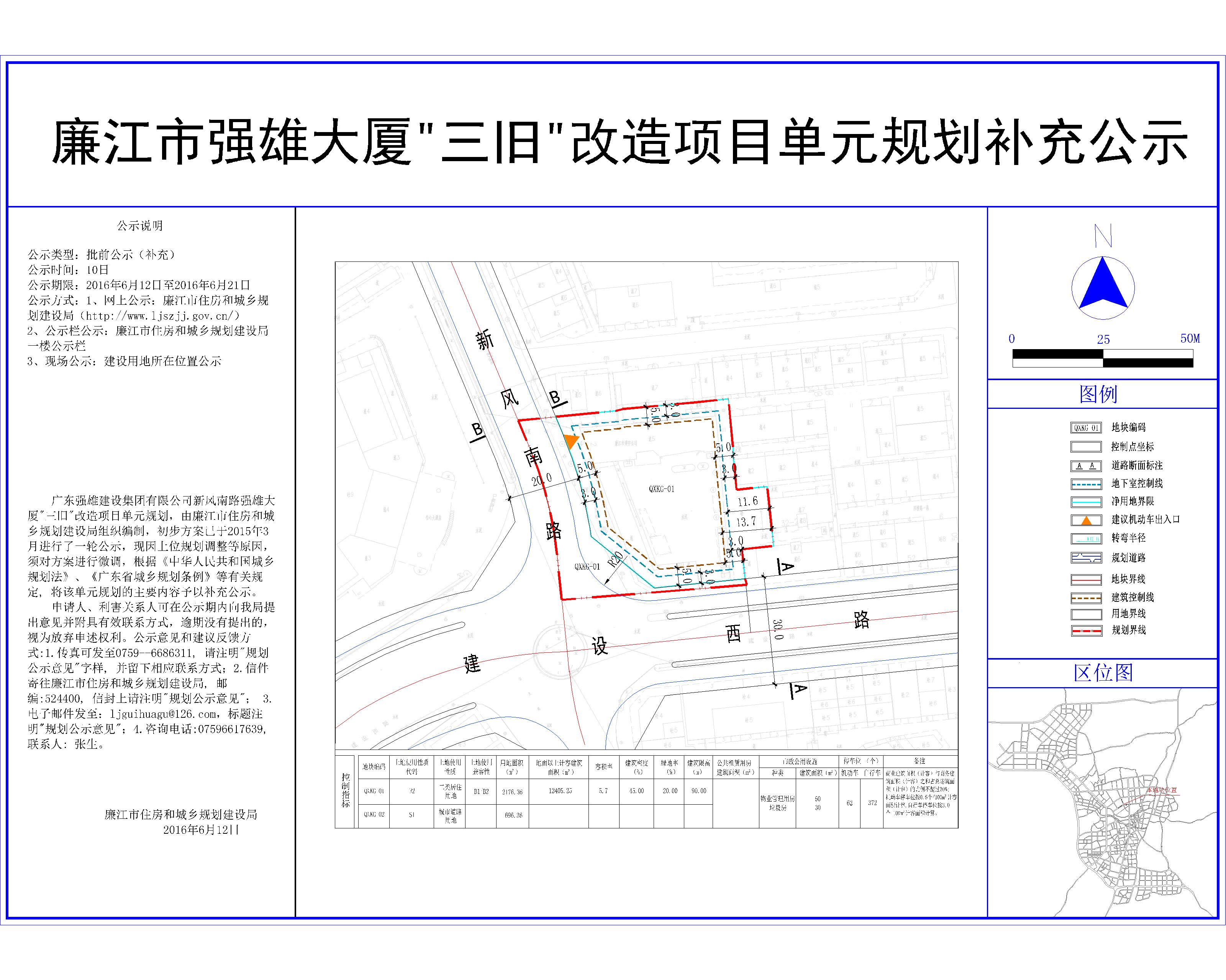 廉江市强雄大厦“三旧”改造项目单元规划补充公示