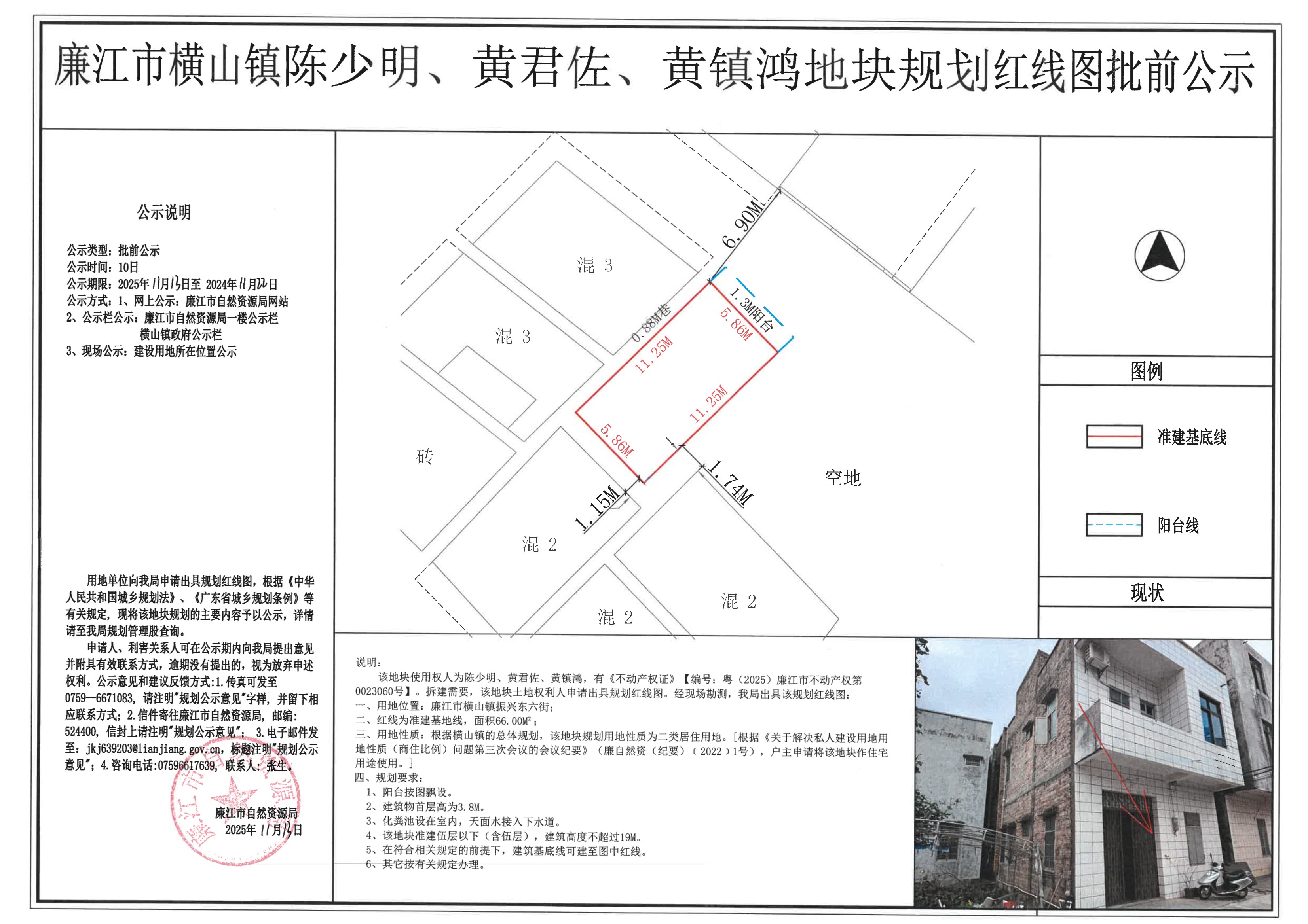 横山镇陈少明、黄君佐、黄镇鸿红线图批前公示