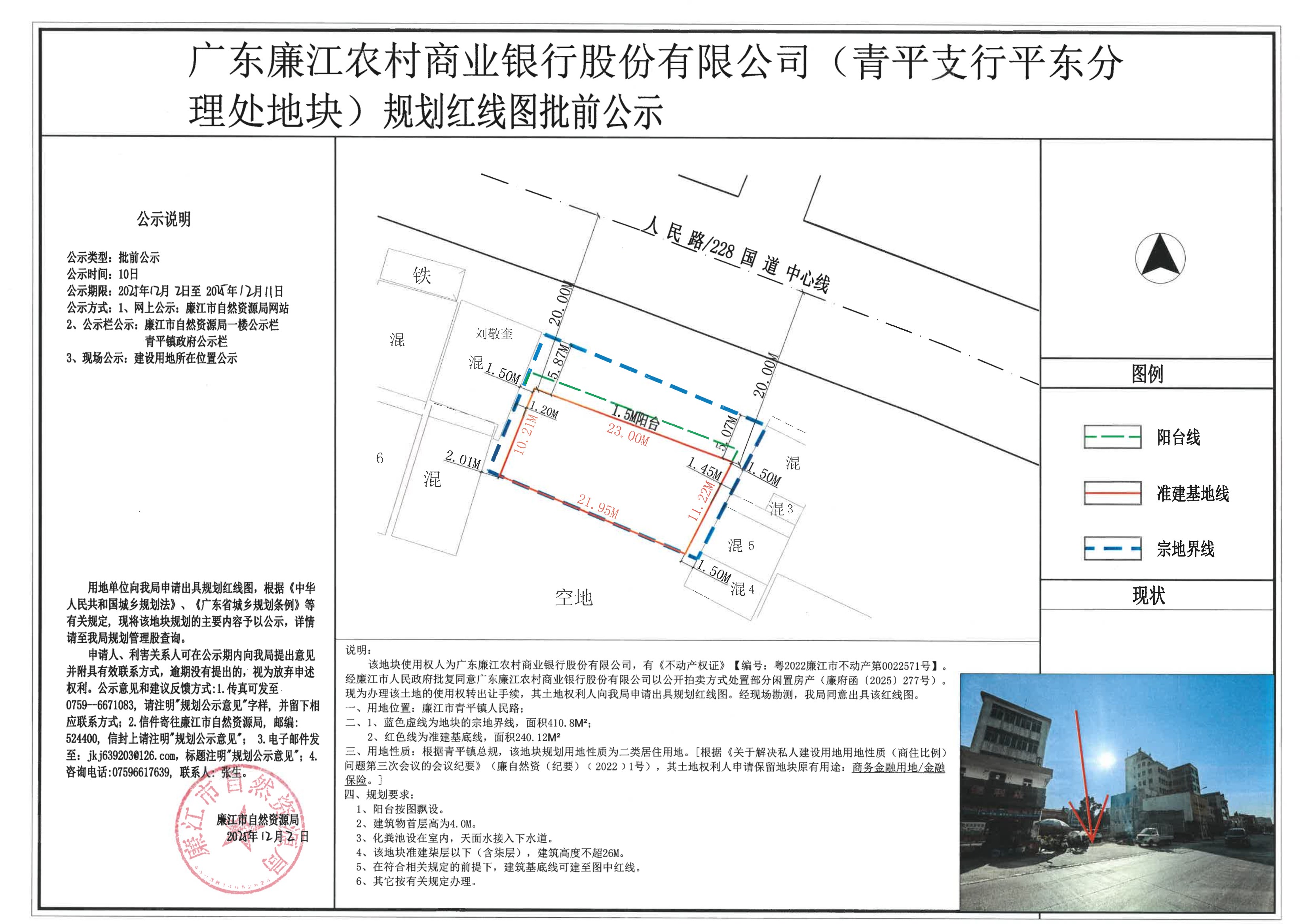 广东廉江农村商业银行股份有限公司(青平支行平东分理处地块)规划红线图批前公司