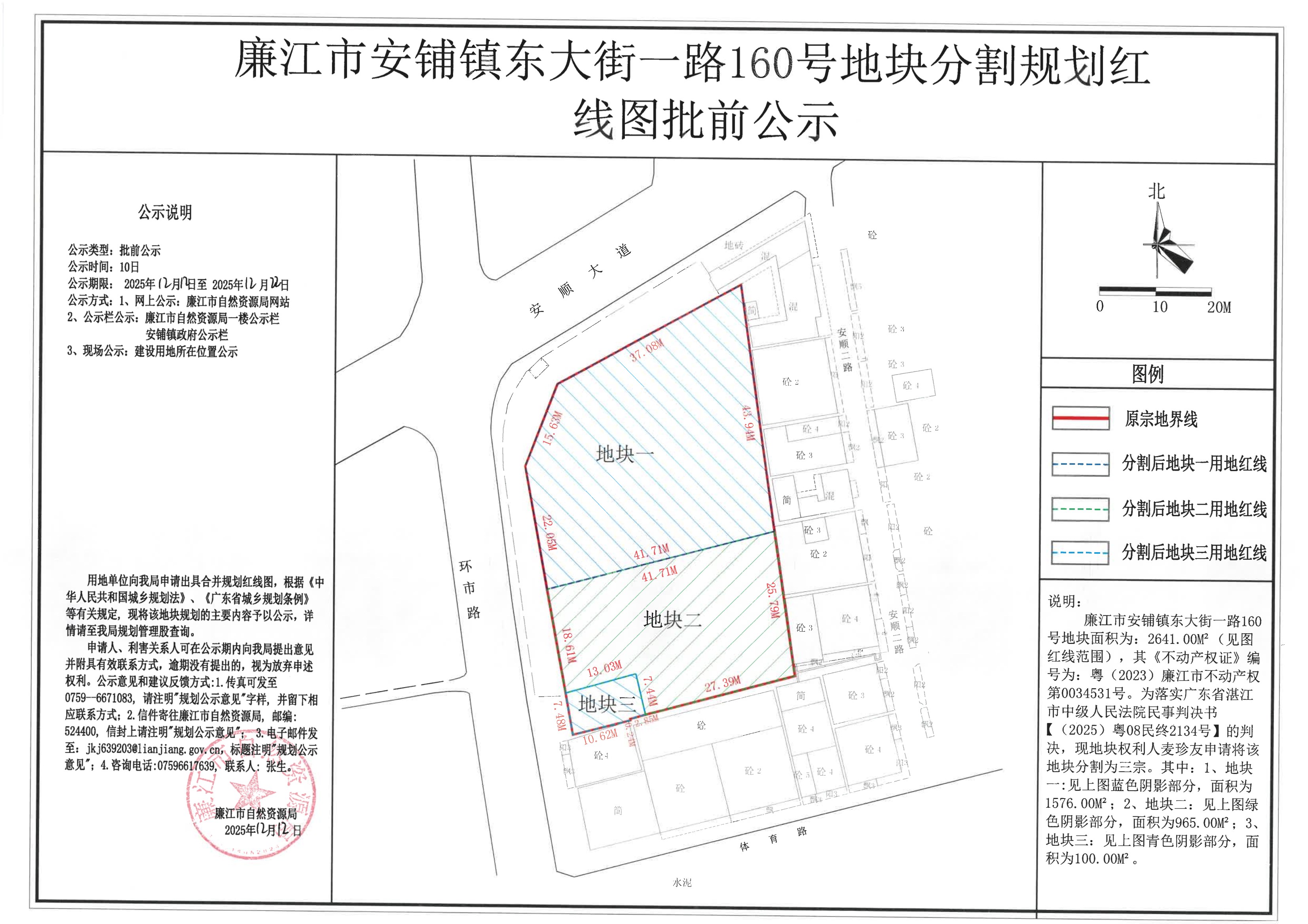安铺镇东大街一路160号地块分割红线图批前公示