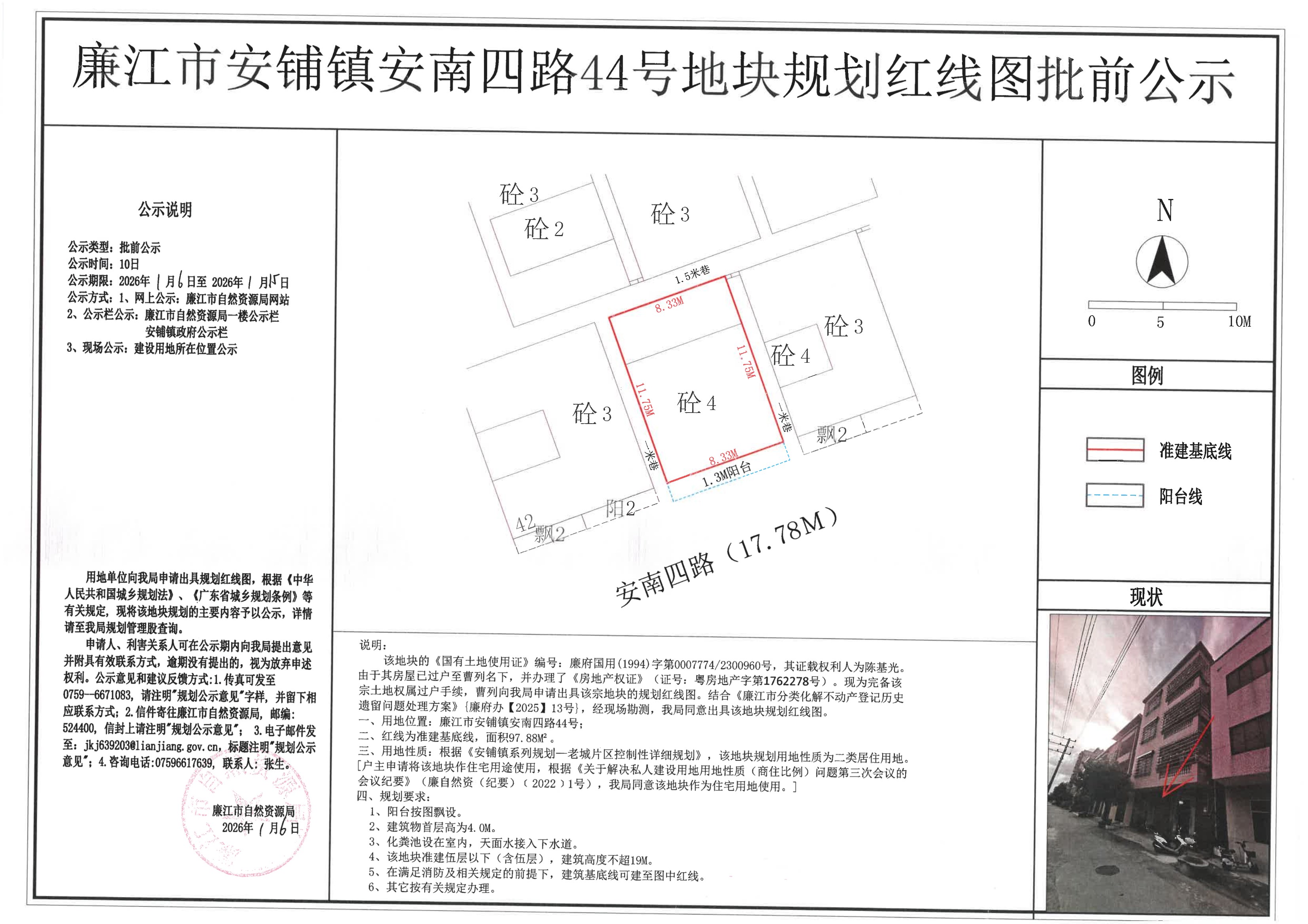 安铺镇安南四路44号红线图(规划条件)批前公示