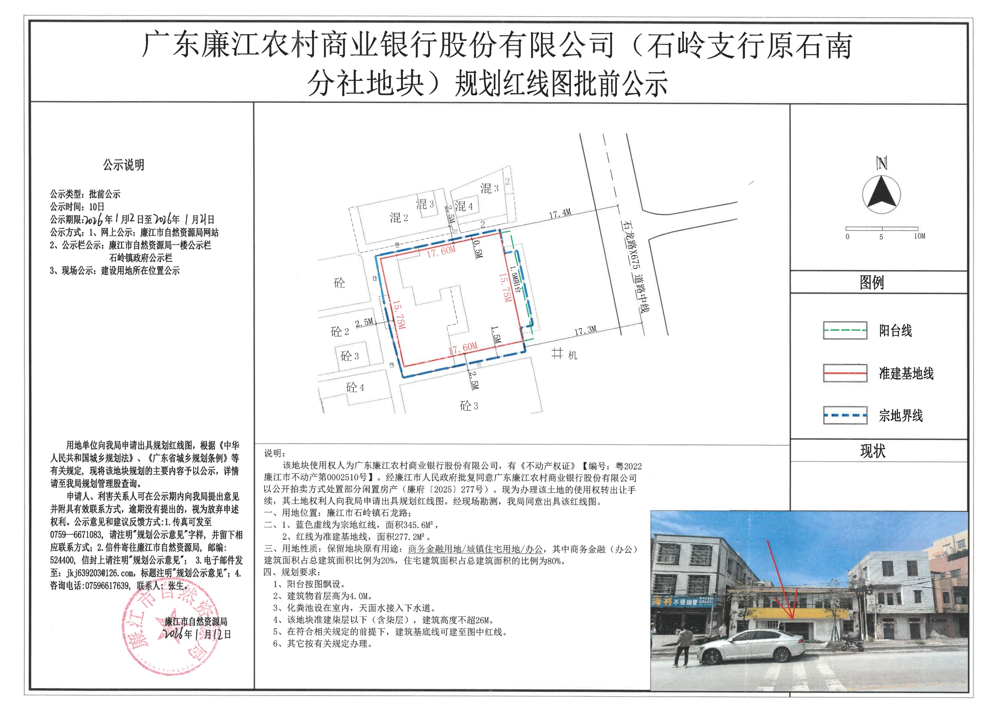 广东廉江农村商业银行股份有限公司(石岭支行原石南分社地块)批前公示