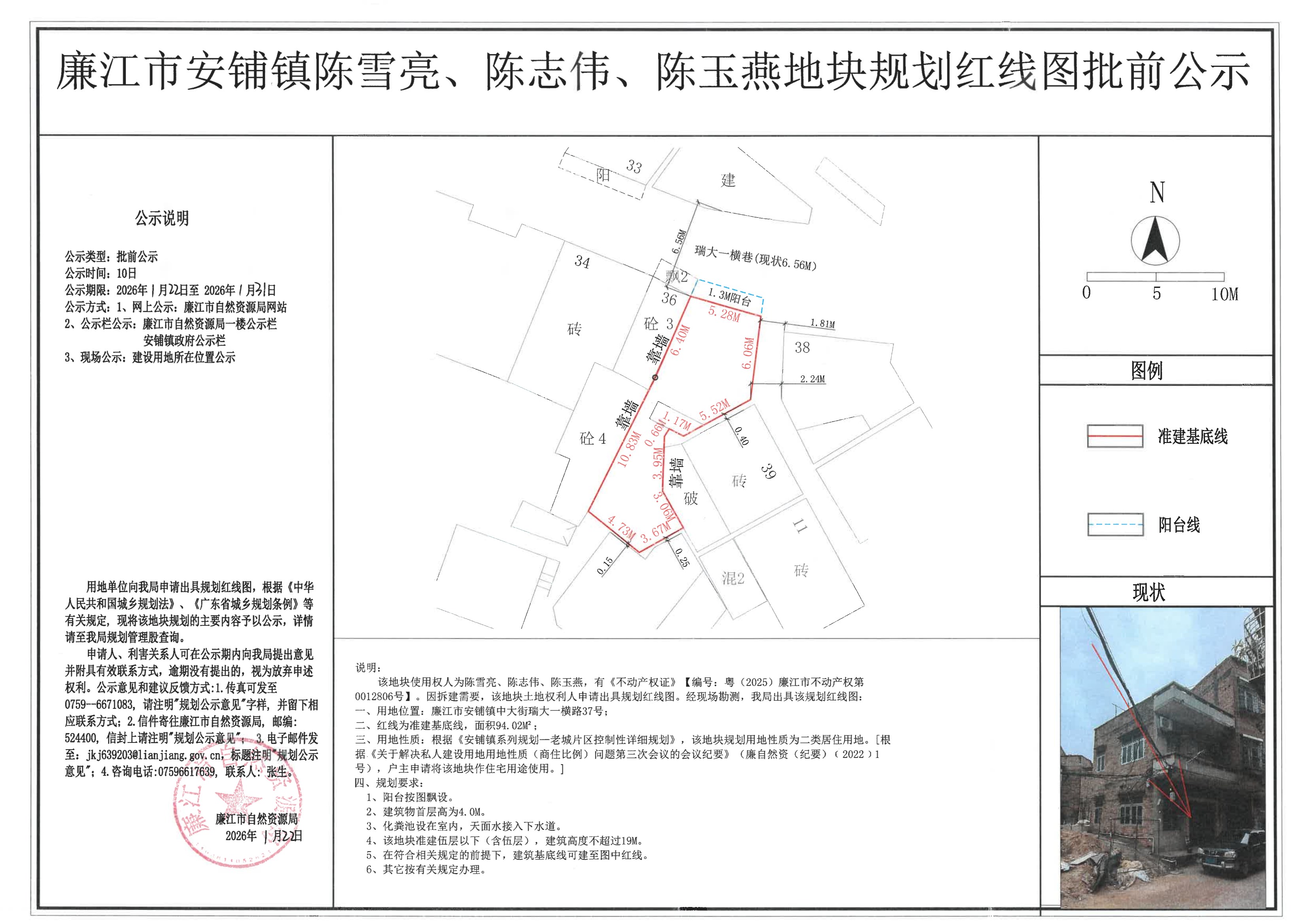 安铺镇陈雪亮、陈志伟、陈玉燕红线图批前公示