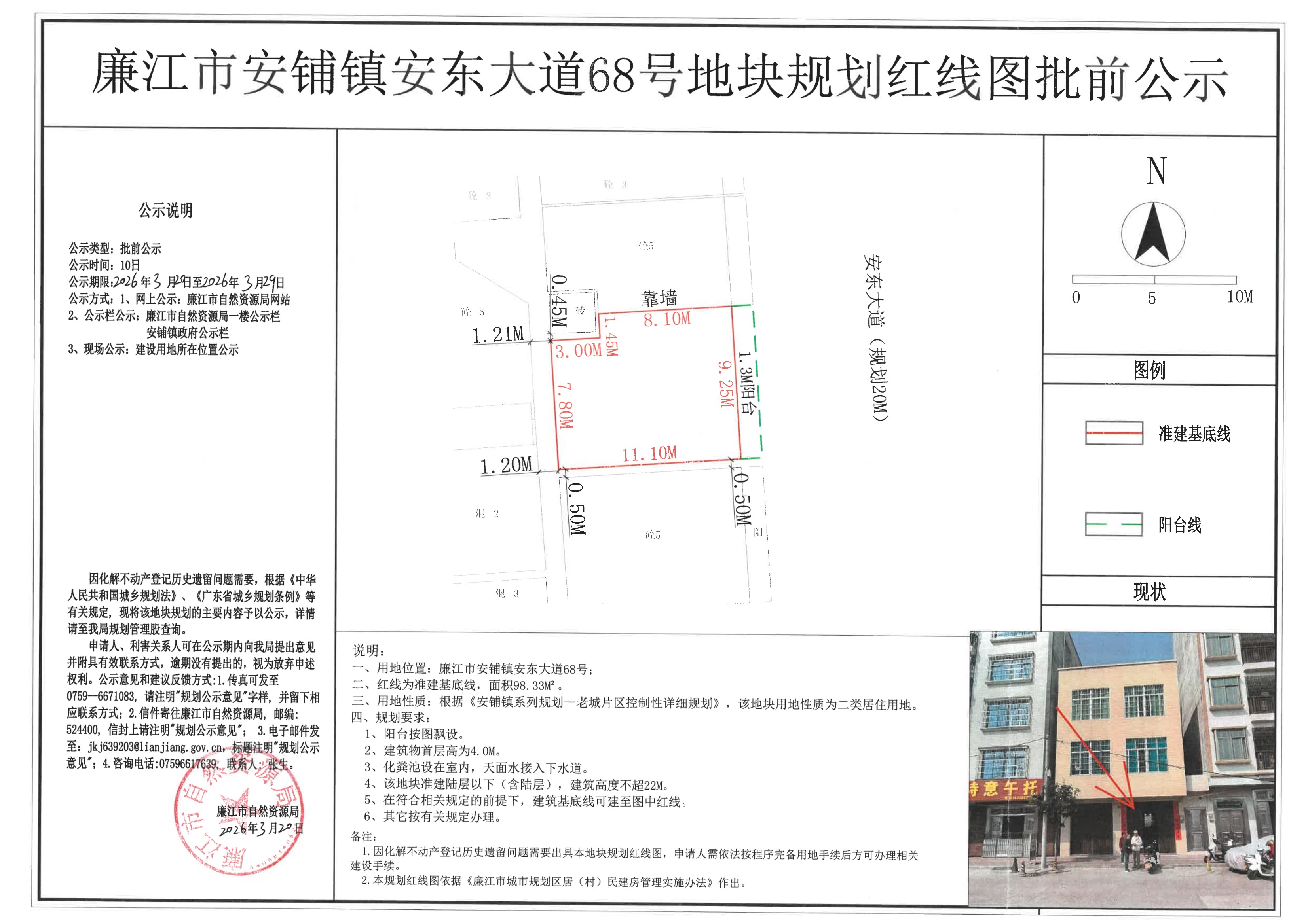 廉江市安铺镇安东大道68号地块规划红线图批前公示