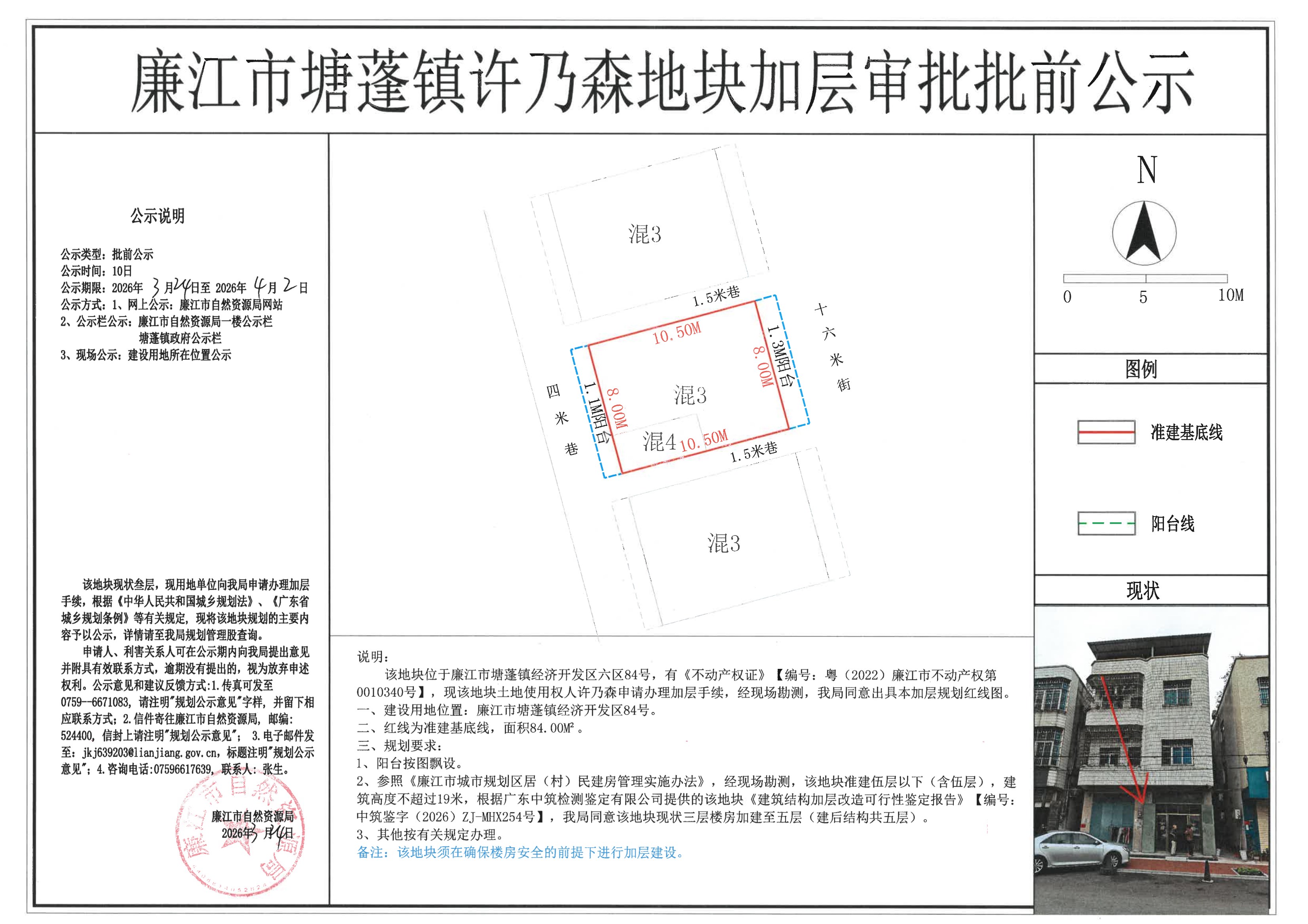 廉江市塘蓬镇许乃森地块加层审批批前公示