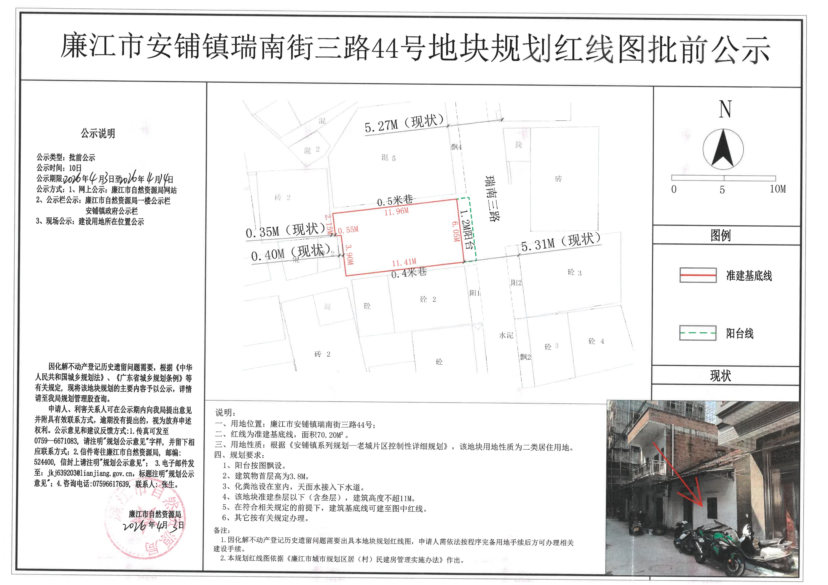 廉江市安铺镇瑞南街三路44号地块规划红线图批前公示
