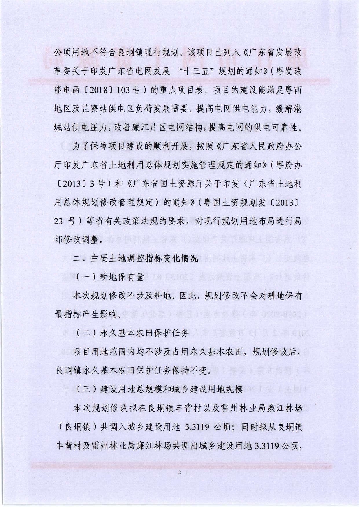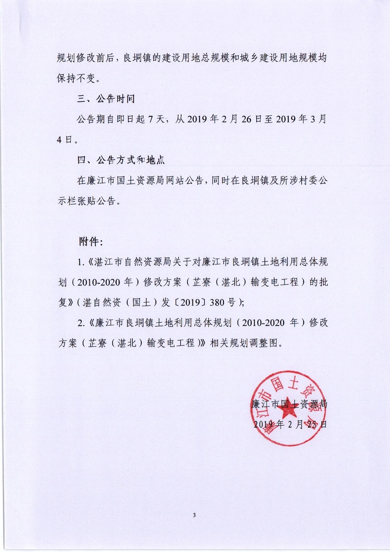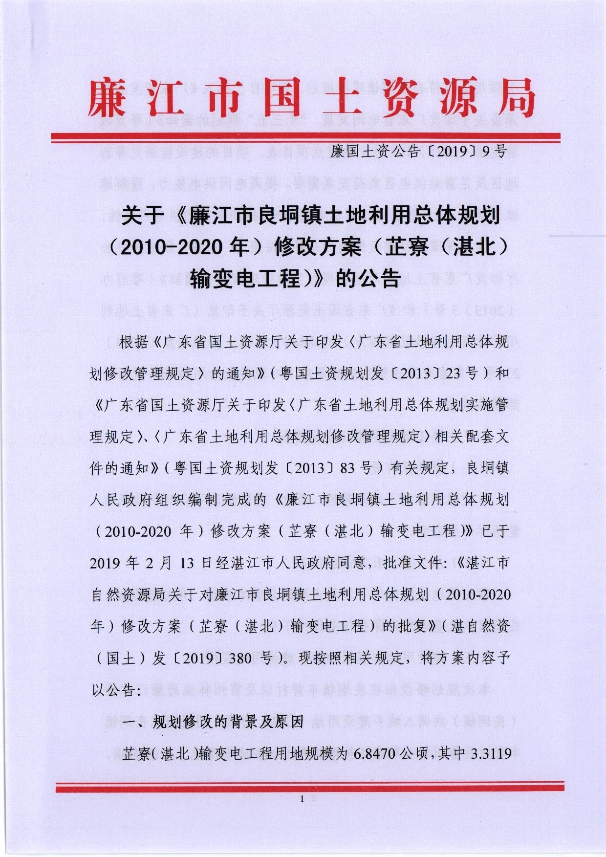 关于《廉江市良垌镇土地利用总体规划(2010-2020)修改方案(芷寮(湛北)输变电站工程)》的公告