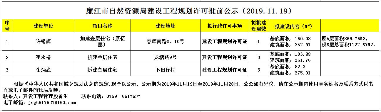 廉江市自然资源局建设工程规划许可批前公示(2019.11.19)