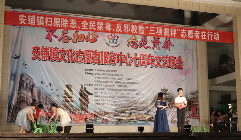 6月1日晚,安铺镇文化志愿者服务中心“不忘初心,志愿青春”七周年文艺晚会在安铺镇文化广场成功举行。安铺镇委、镇政府也利用此次晚会开展全民禁毒、扫黑除恶、反邪教暨“三项测评”宣传活动,整个晚会内容丰富多彩,吸引了众多群众观看。